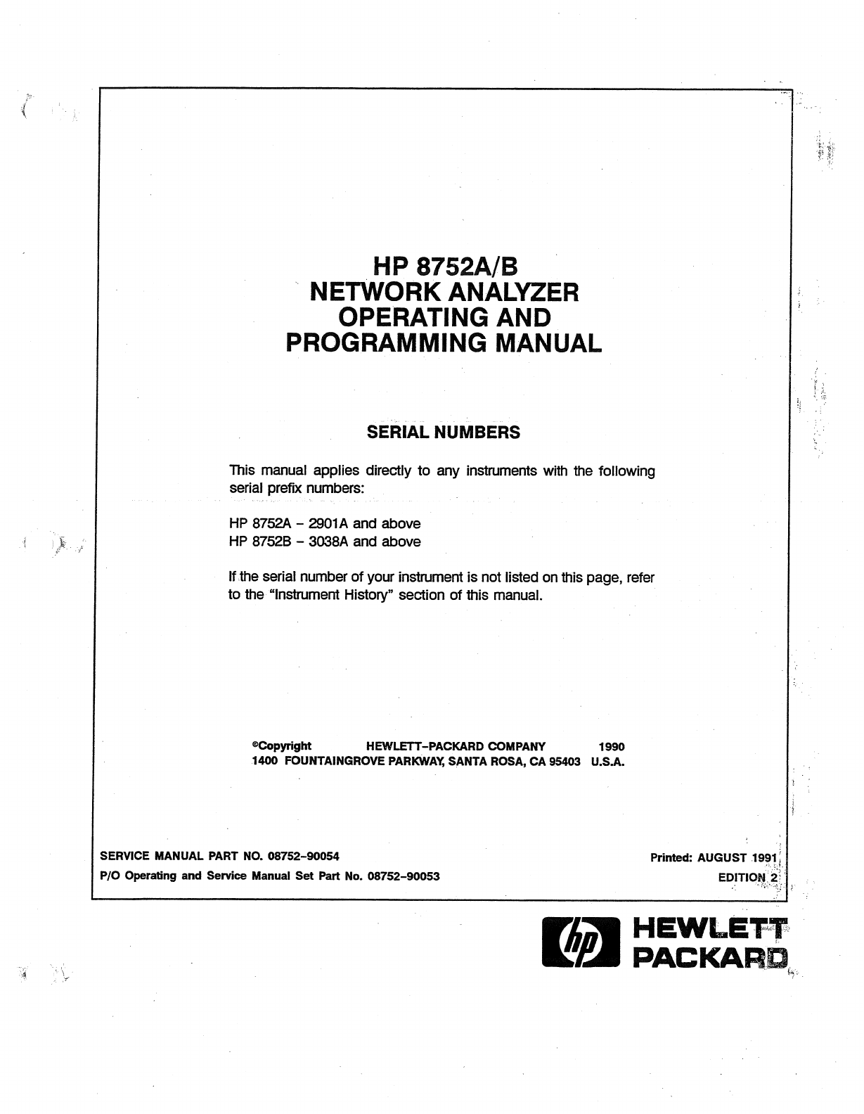 User Manual: HP-8752A,B-Network-Analyzer-operators,-programming-part-1-1991-WW HP