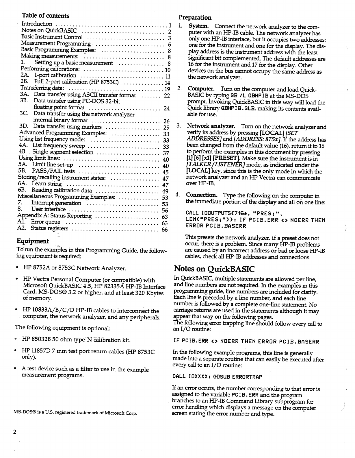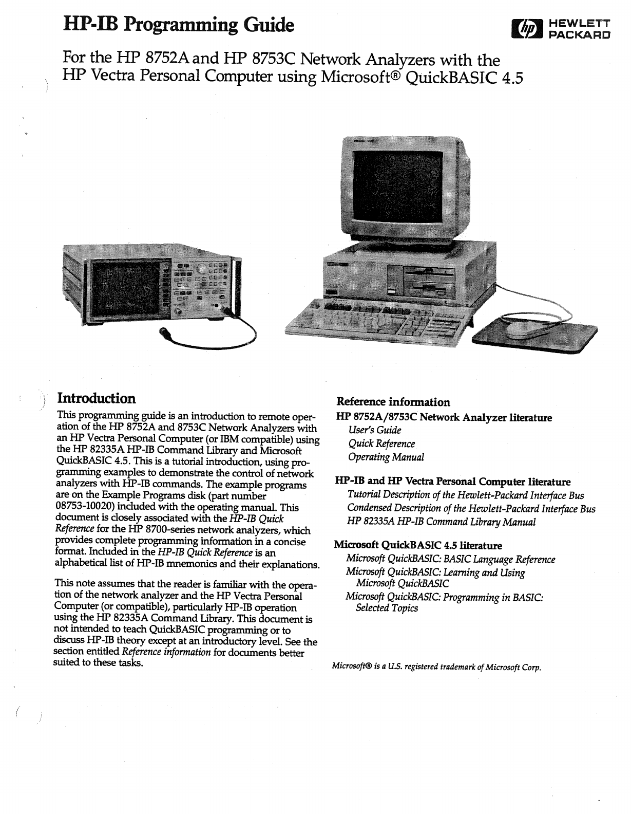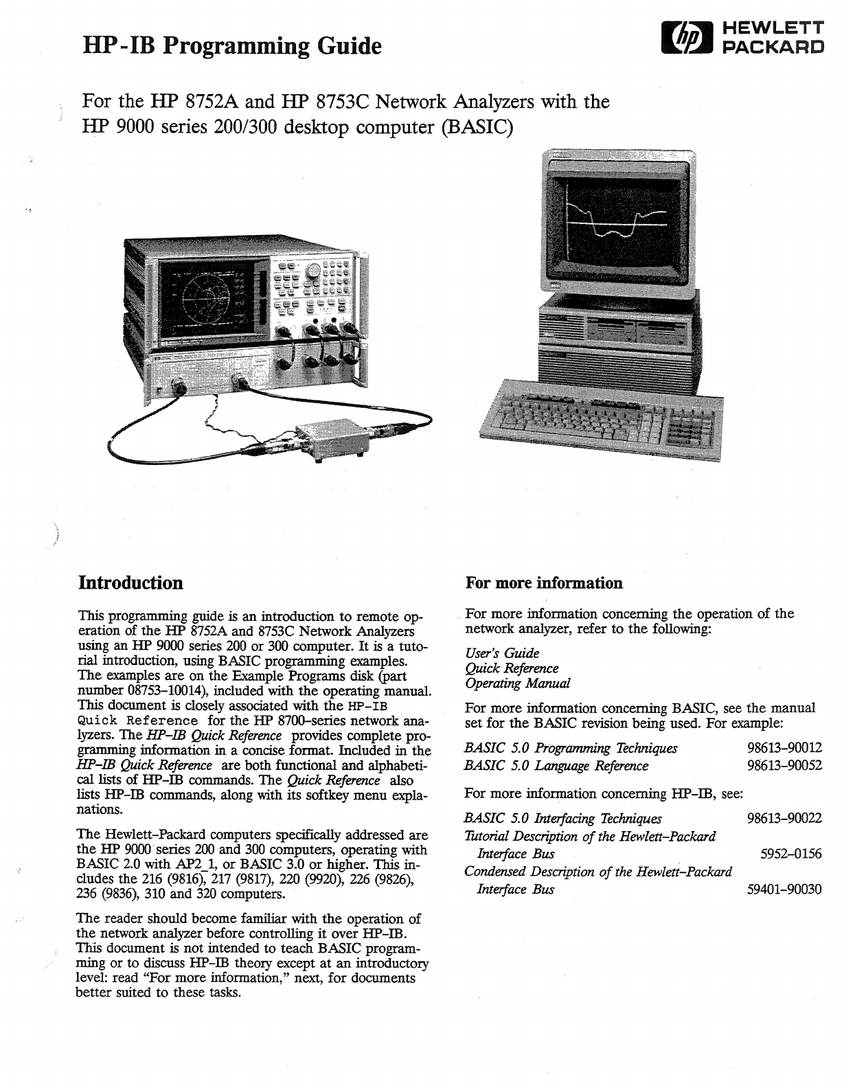 HP 8752A,B Network Analyzer Operators, Programming Part 1 1991 WW