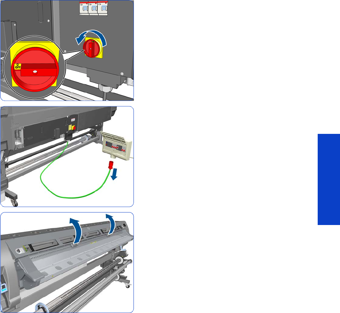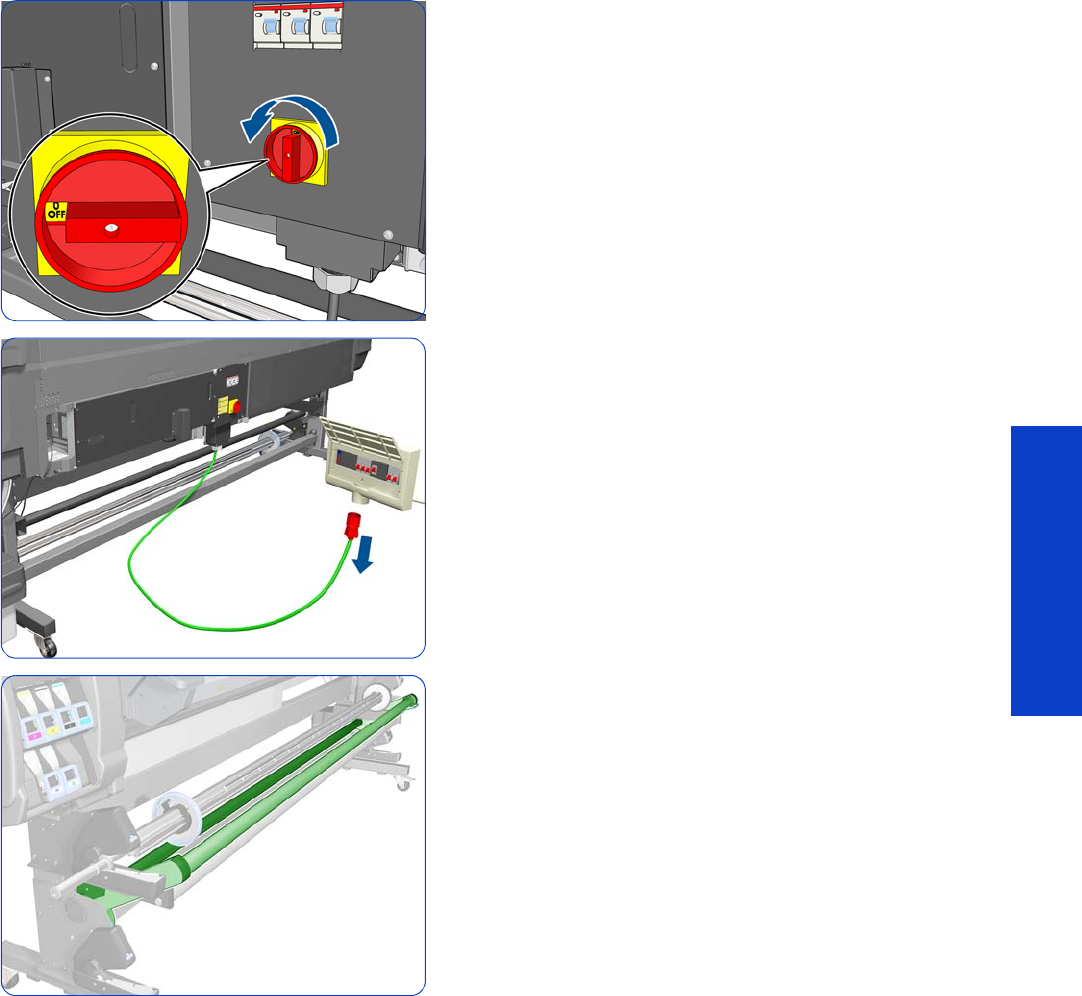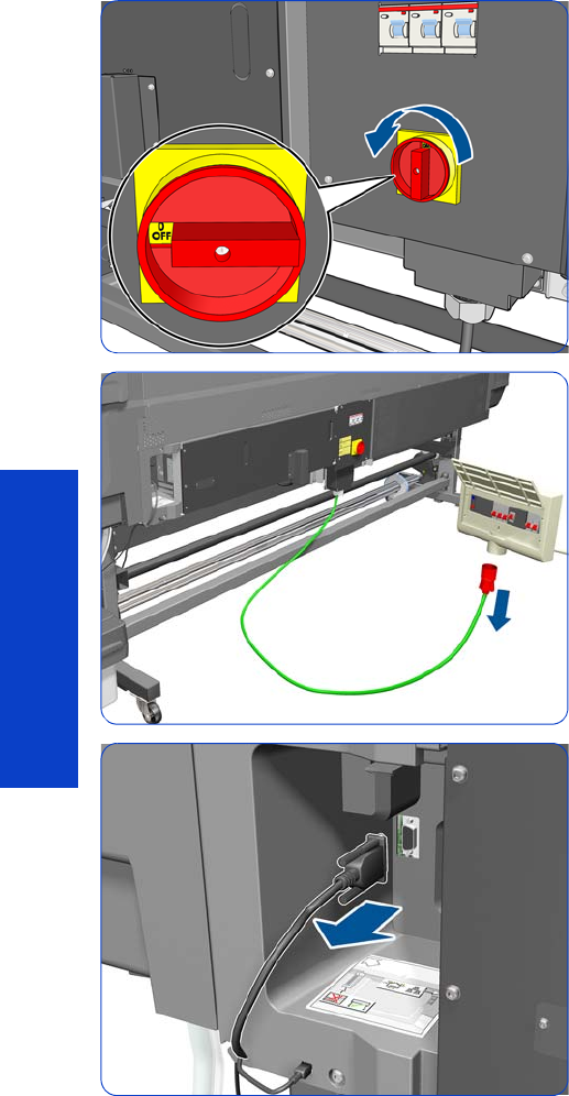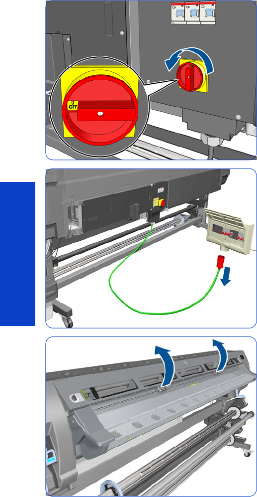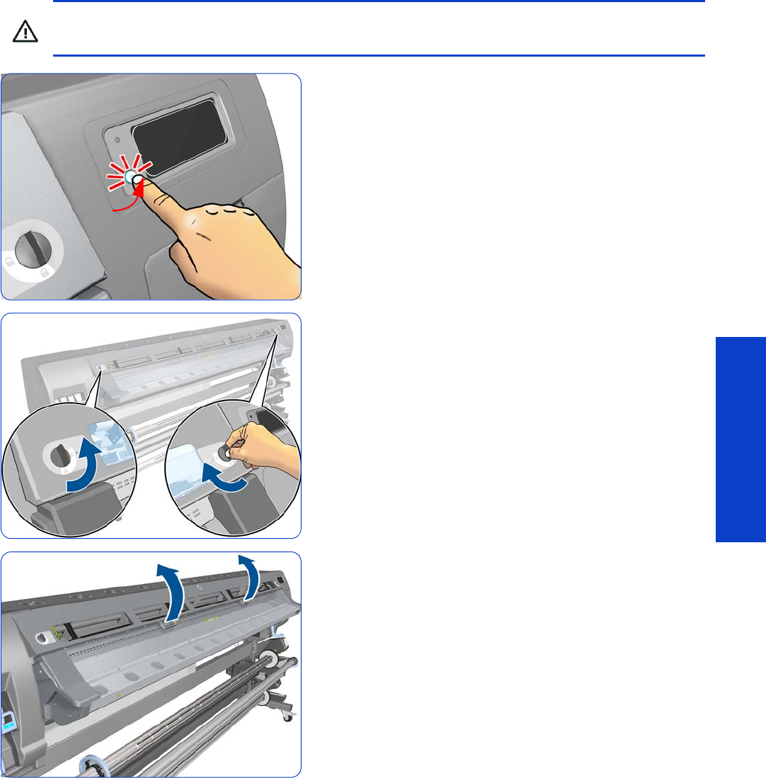 turning off the printer and disconnecting it from the power mains. See “Safety precautions” on page 277.