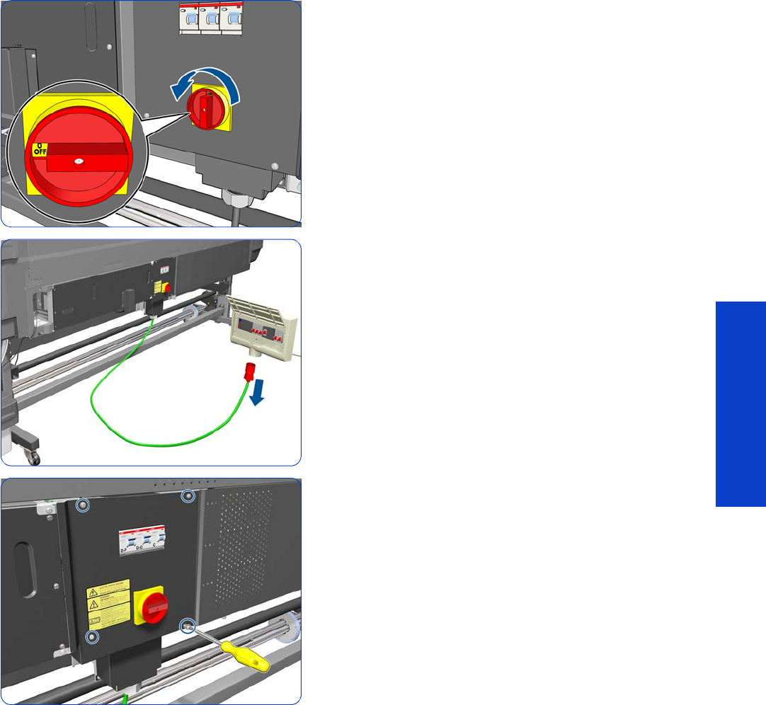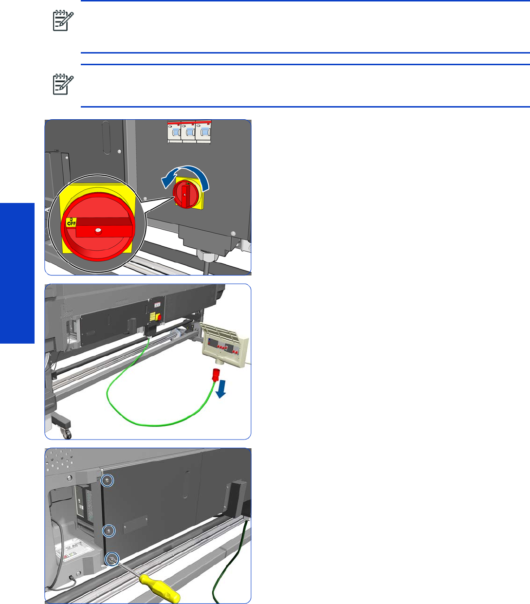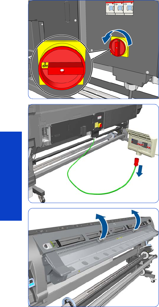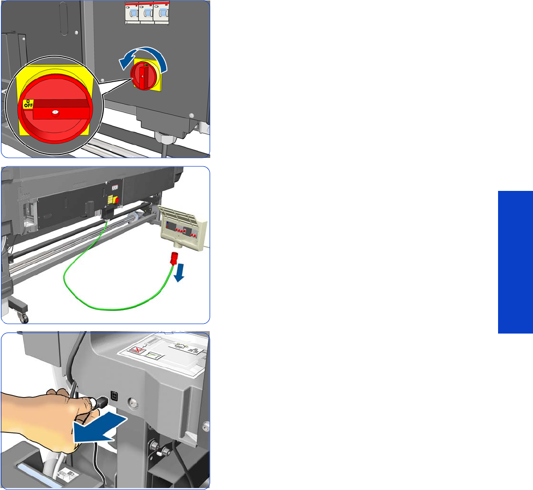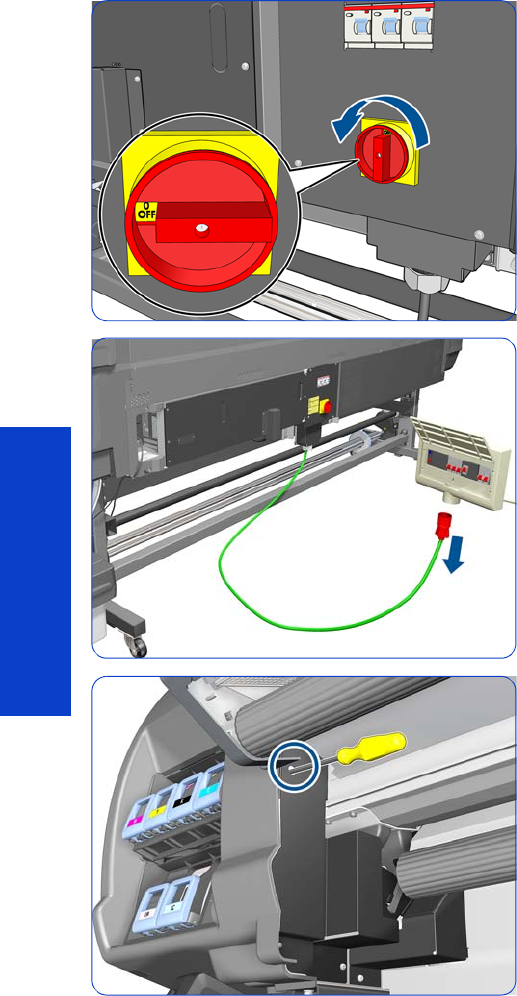 turning off the printer and disconnecting it from the power mains. See “Safety precautions” on page 277.