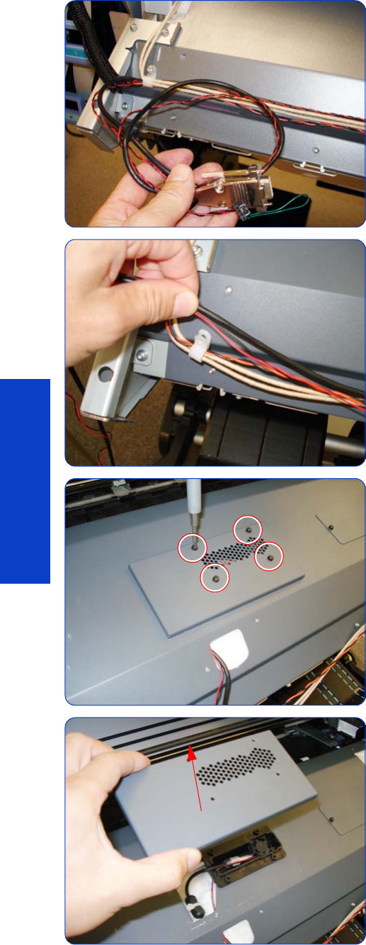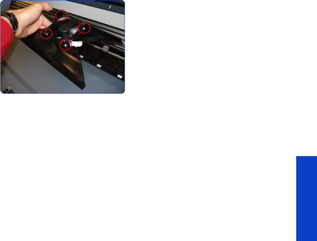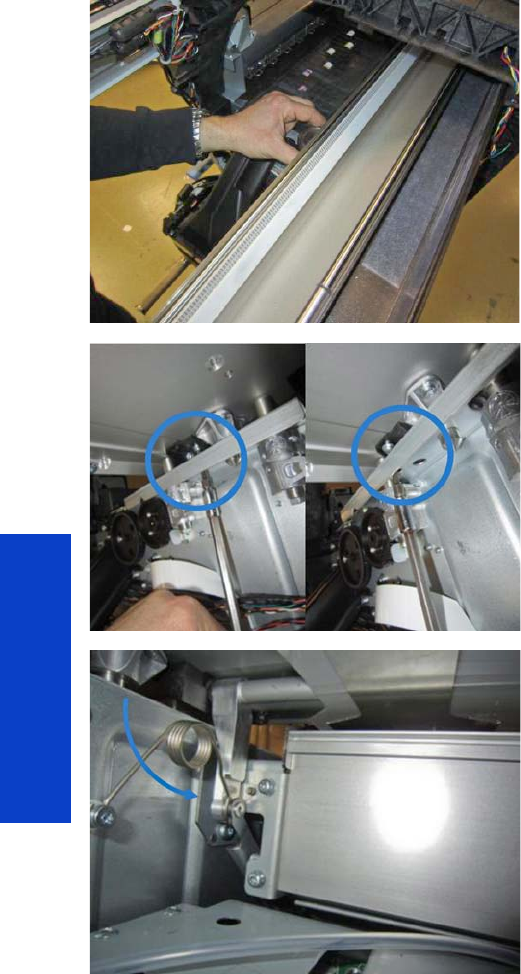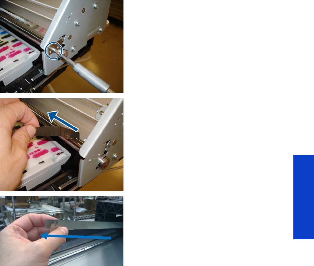 The Scan Axis Encoder Strip is very sharp, and can easily cut your hands when you must work near it.