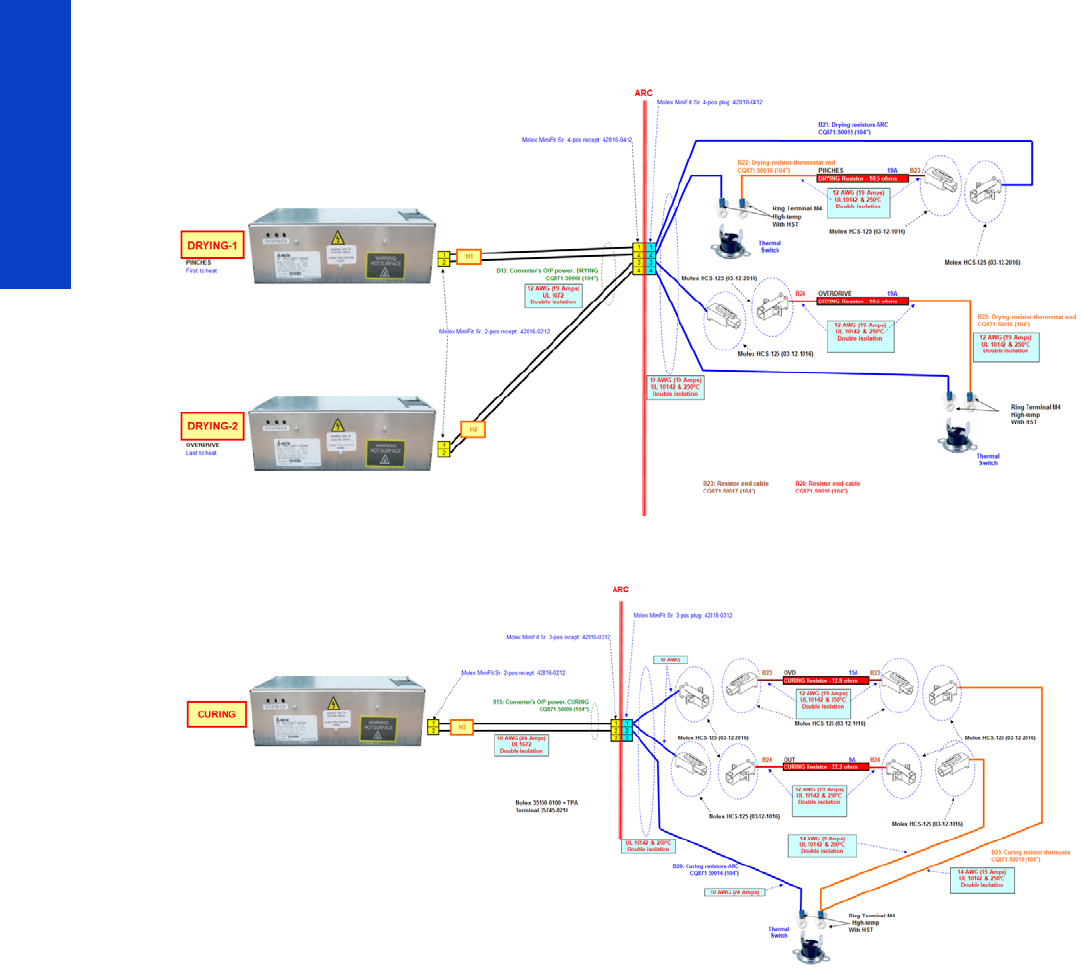 WARNING! The drying and curing modules operate at hazardous voltages capable of