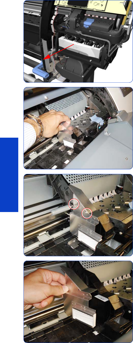 •Take care that sleeves and gloves do not get caught in the mechanical parts of the printer.