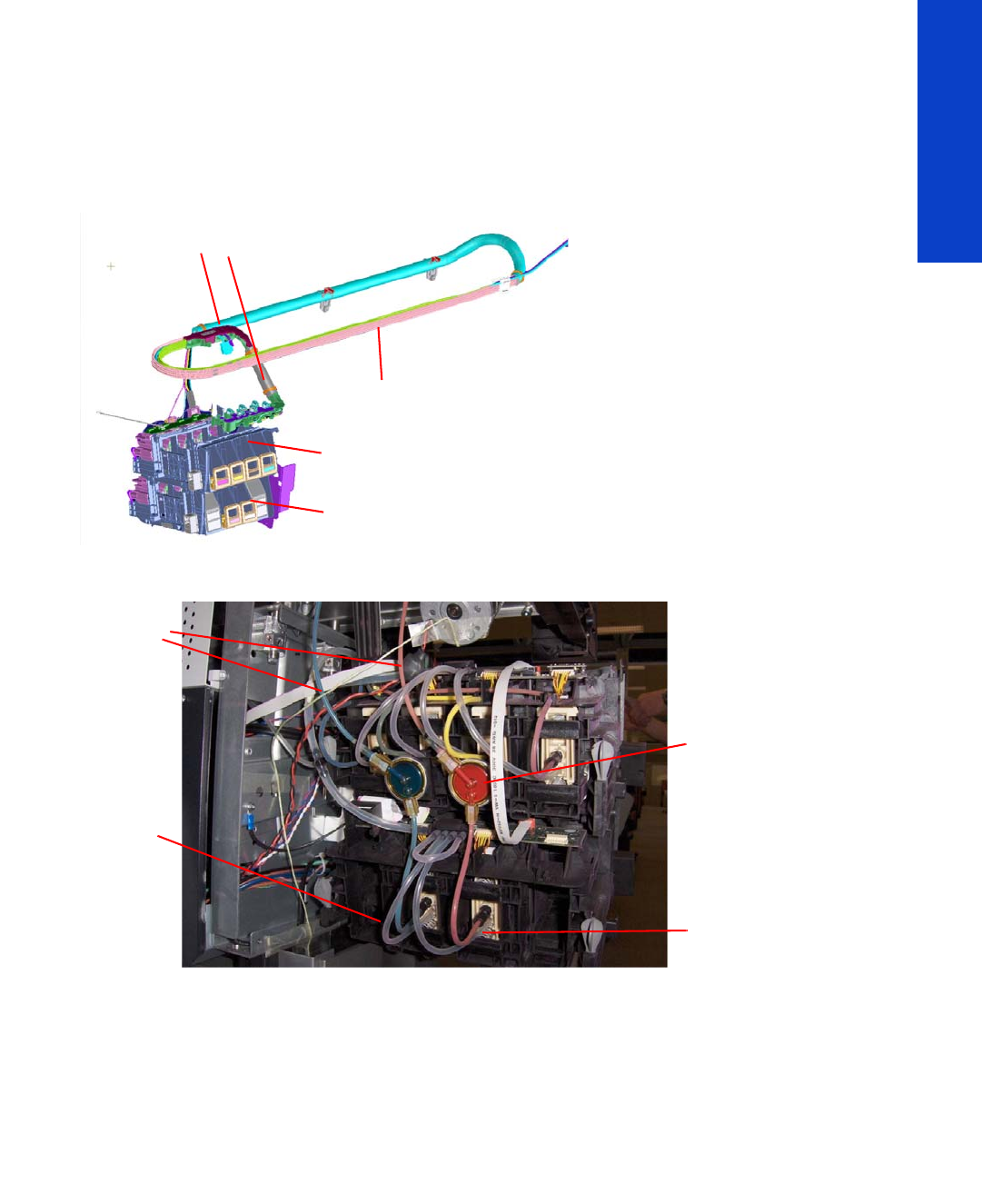 The drying and curing subsystems of the printer operate at high temperatures and can cause burns if