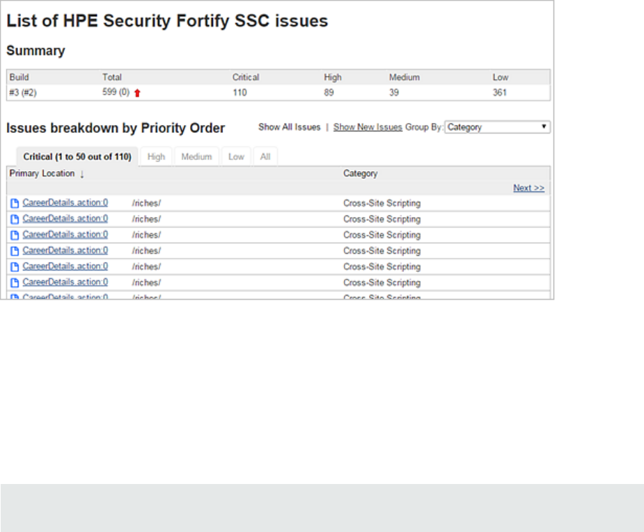 takes you directly to the details for that issue on the Fortify SoftwareSecurity Center server. If you are