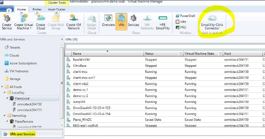 Citrix cloud connector installation on HPE SimpliVity storage using Microsoft SCVMM plugin is tested