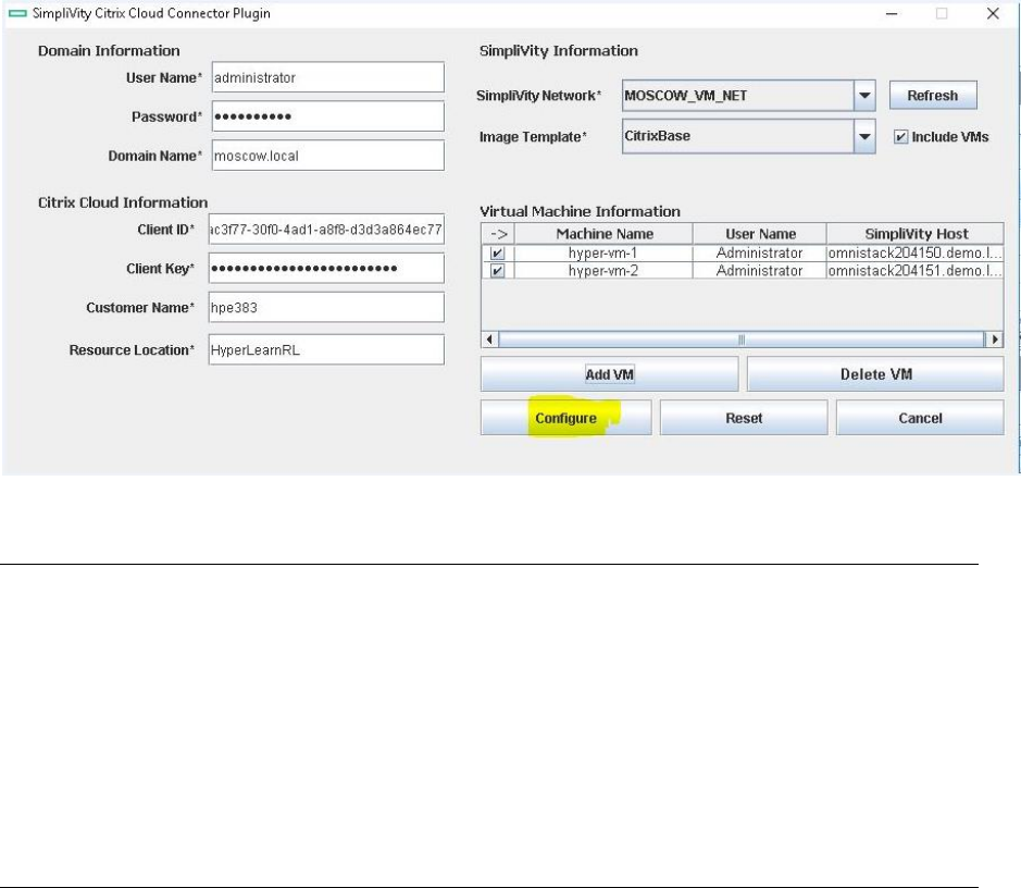 Figure 15: HPE SimpliVity Citrix Plugin Configuration information screen