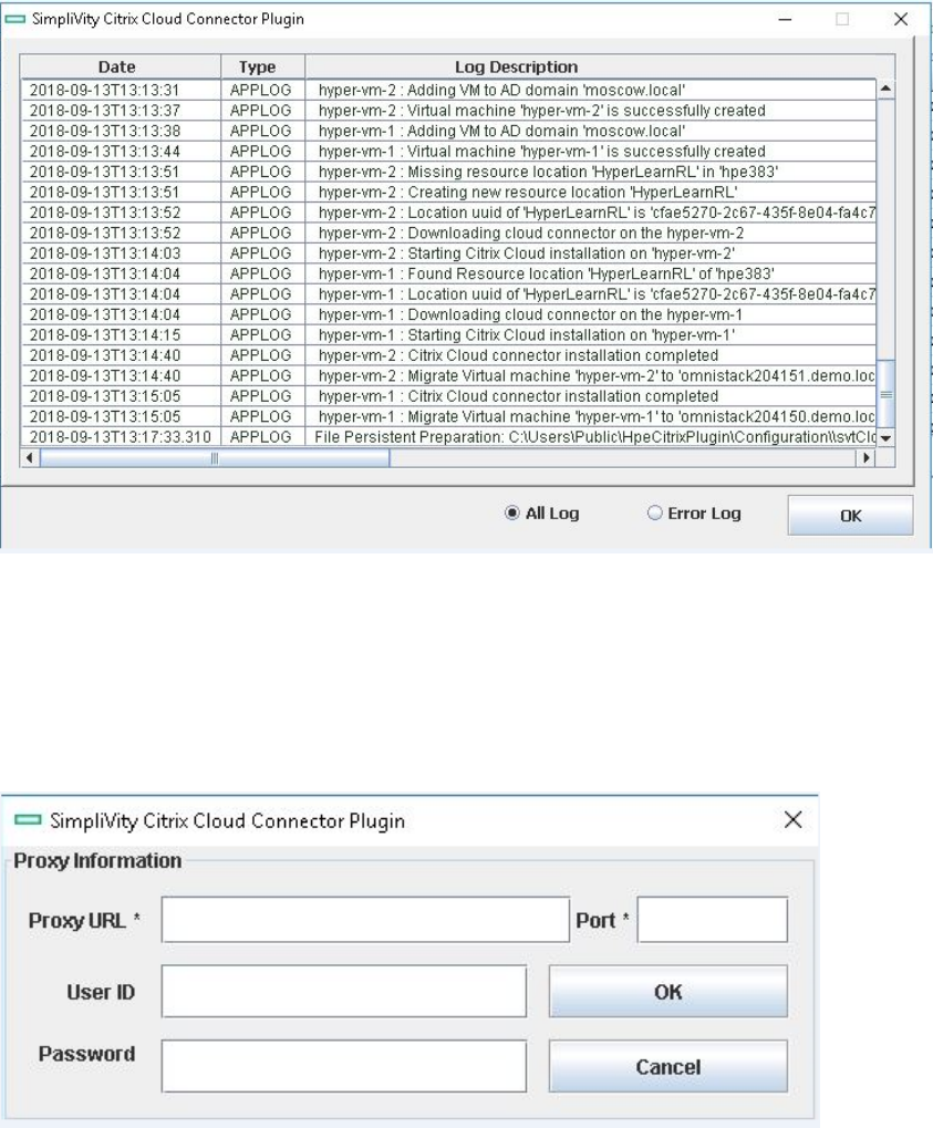 Figure 14: HPE SimpliVity Citrix plugin - Proxy Information