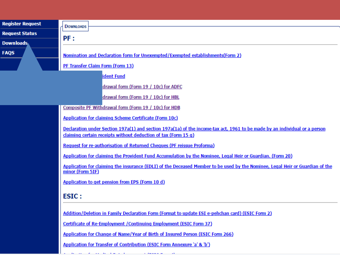 Please go through the FAQs for queries related to PF & ESIC before raising a request