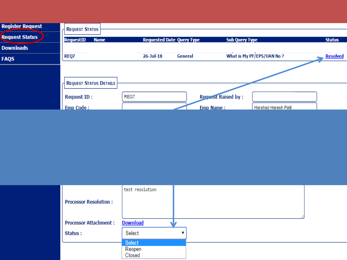 Once your re-opened request is resolved by the Processor, you will get a mail trigger