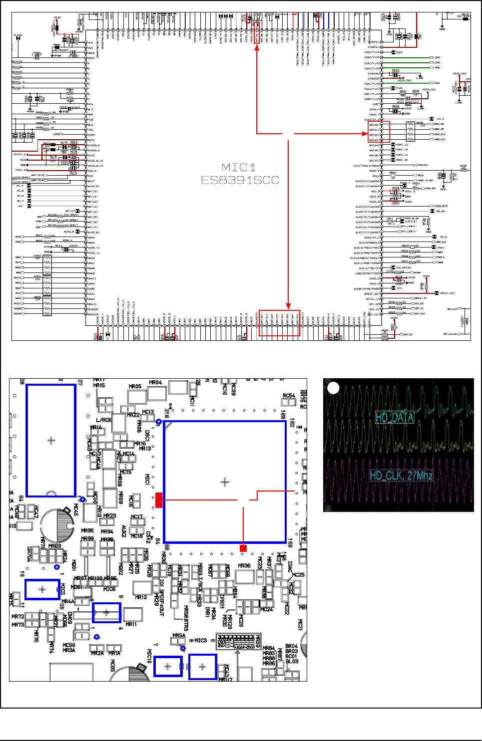 The main system uses the MPEG (ES8391). The HDMI Tx IC is ES7108S. The main system consists of major circuit