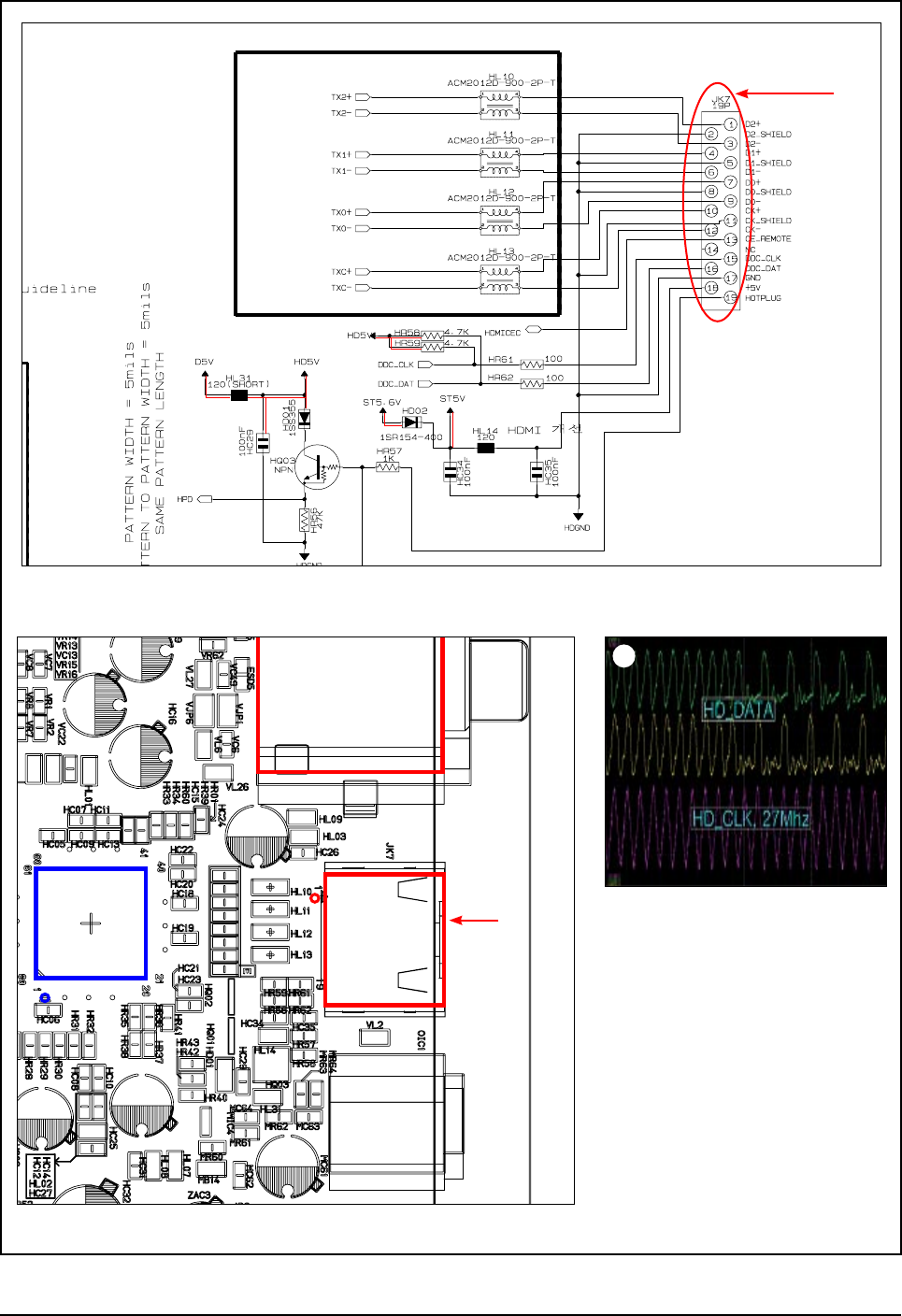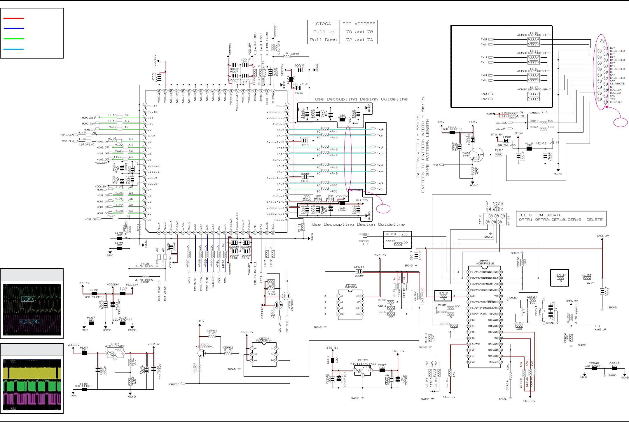 HDMI IC is implemented by the I2C. The Micom and MPEG control each other through RXD and TXD communication.