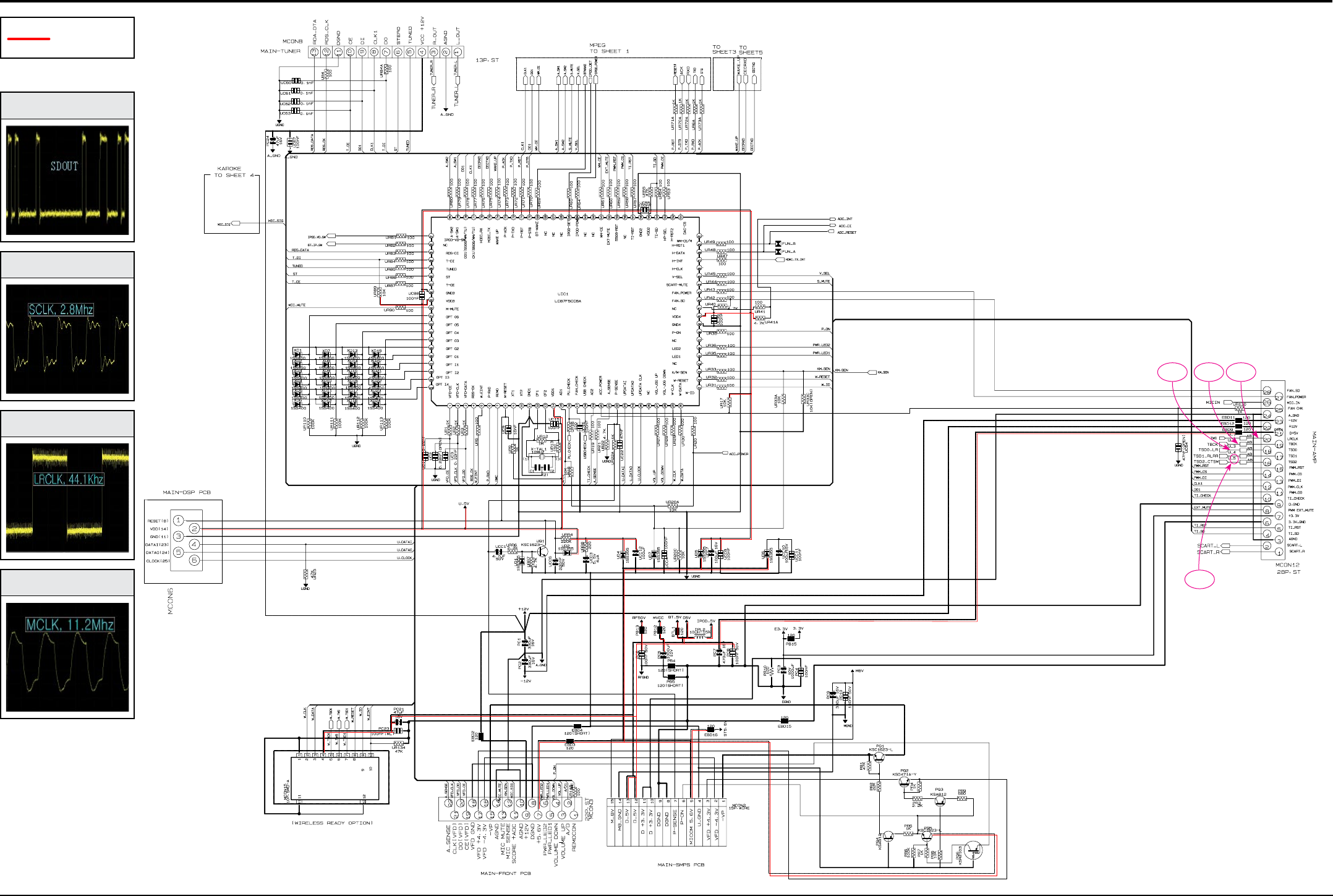 The Main system includes the functional blocks such as FM-TUNER, AUX INPUT, ADC, Sub_Micom, etc.