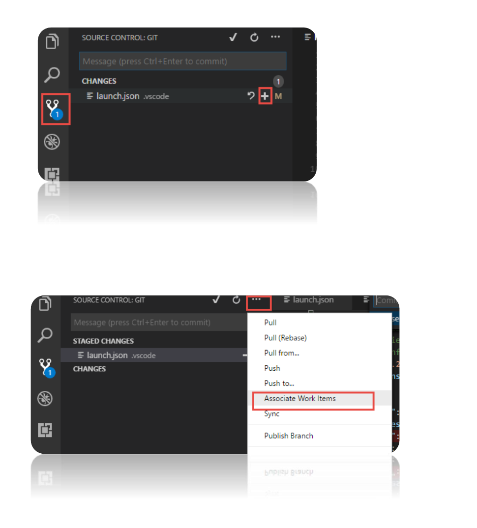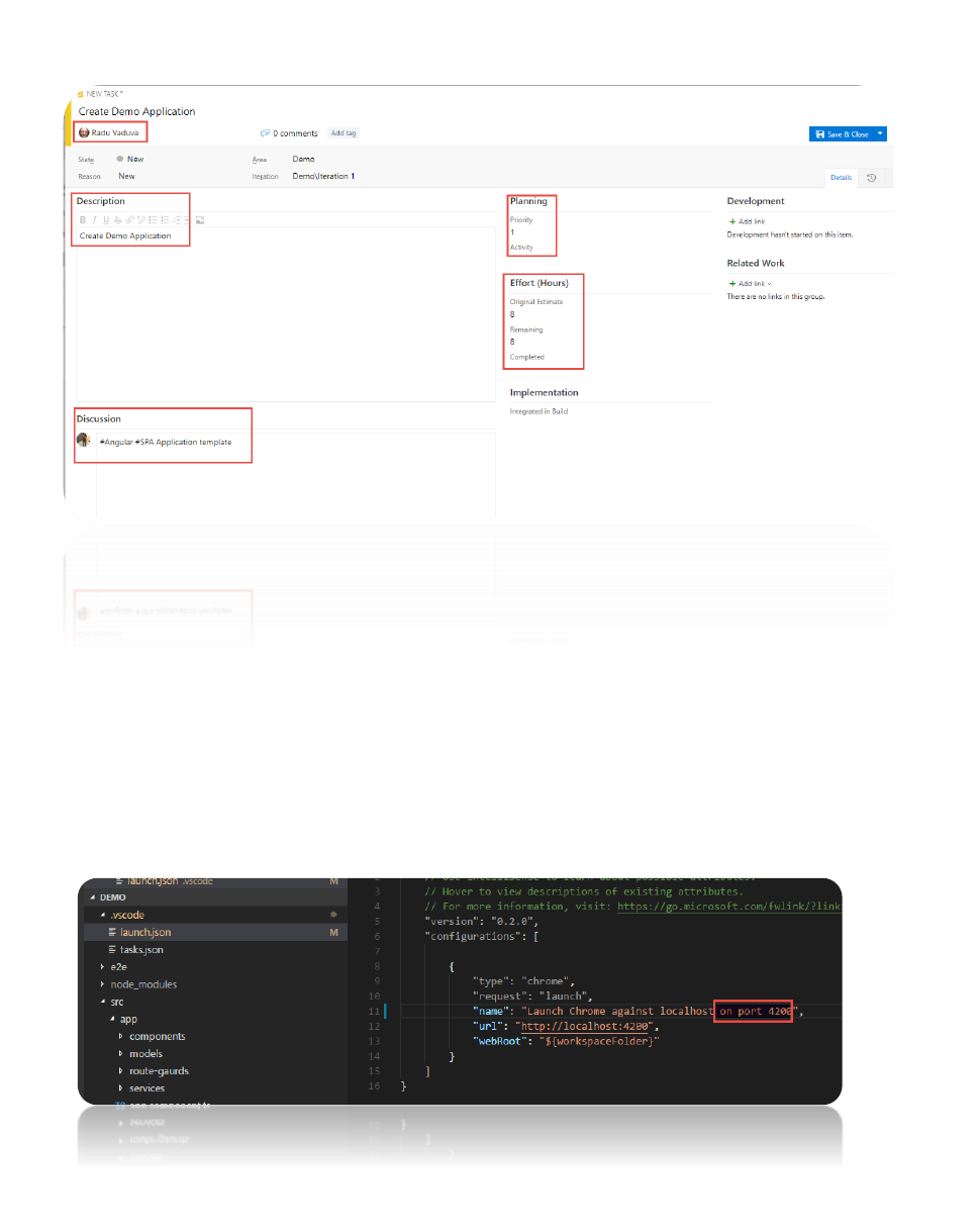 Go back to VSCODE, make changes to the launch.json file and associate the work item