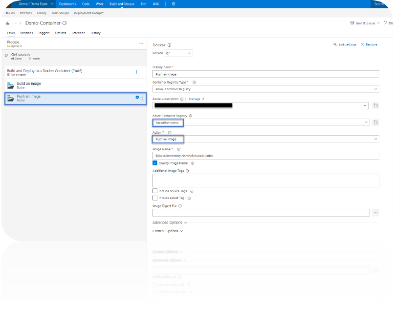 b. Configure VSTS Build and deployment tasks to Build and Update the Azure