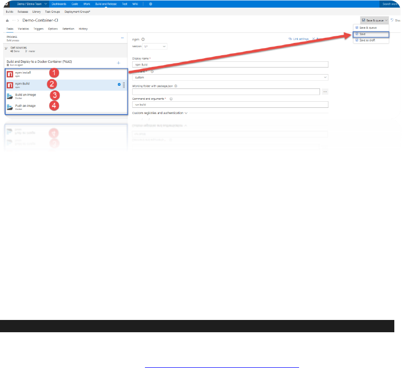 9. Next, we will move our NPM tasks to the top and save the definition so that the final