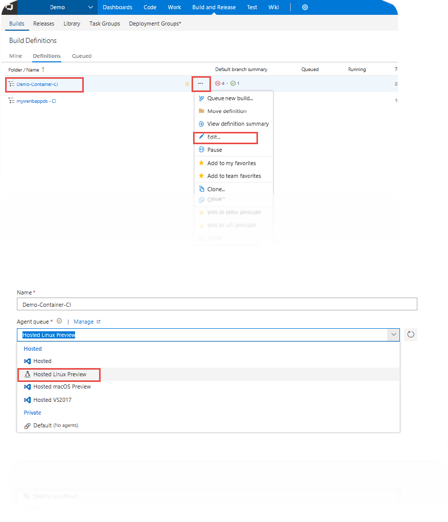 20. Set the “Run on Agent” so that the “Agent Queue” is set to “Hosted Linux Preview” as such: