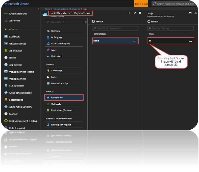 25. Now validate that you can see the Azure Container Registry option within the Docker