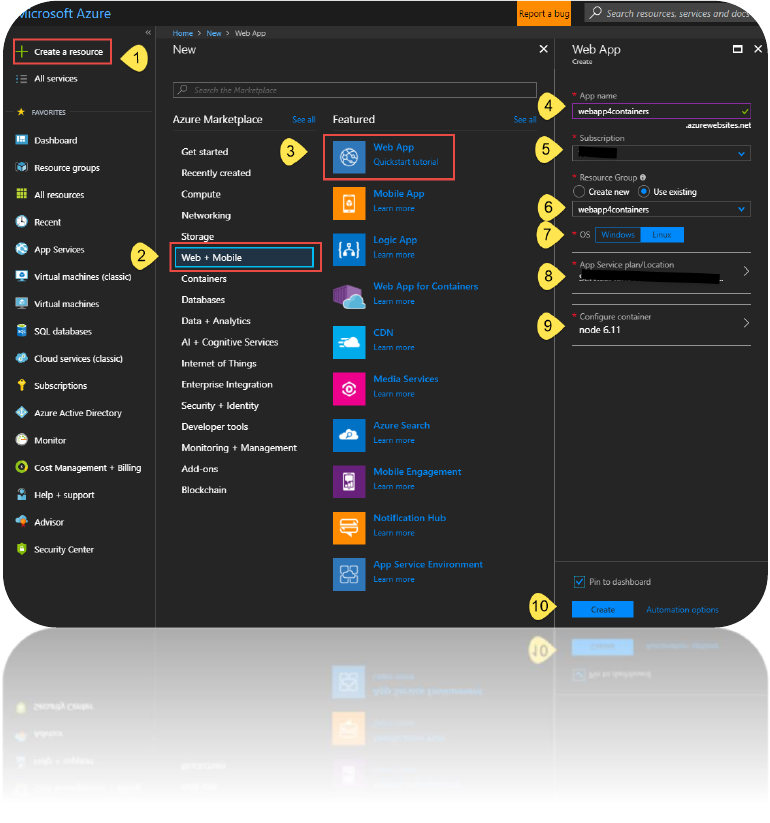 Azure web app to host the container. This can be achieved in Azure by creating a "Web
