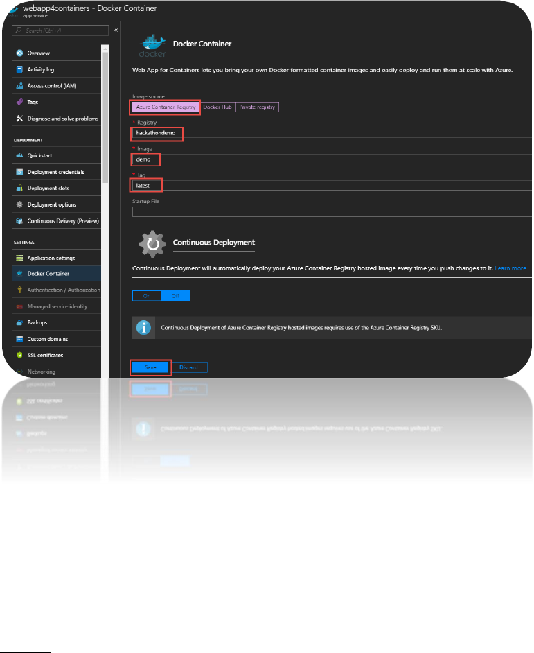 26. Next Configure the Azure web app so that it is configured to your Azure Container