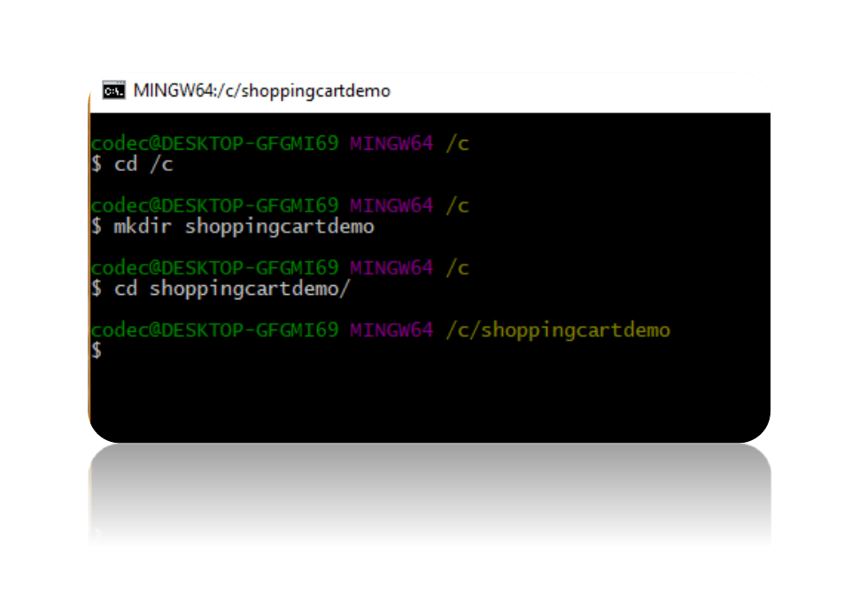 8. Clone the repository from the bash shell you opened earlier as follows: