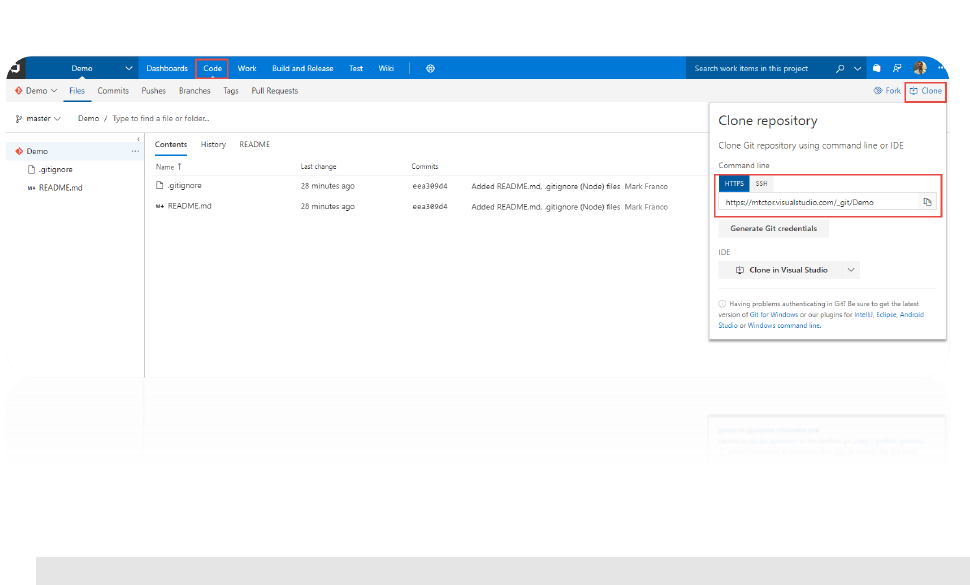 Note: When you connect to a VSTS Git repository from your Git client for the first