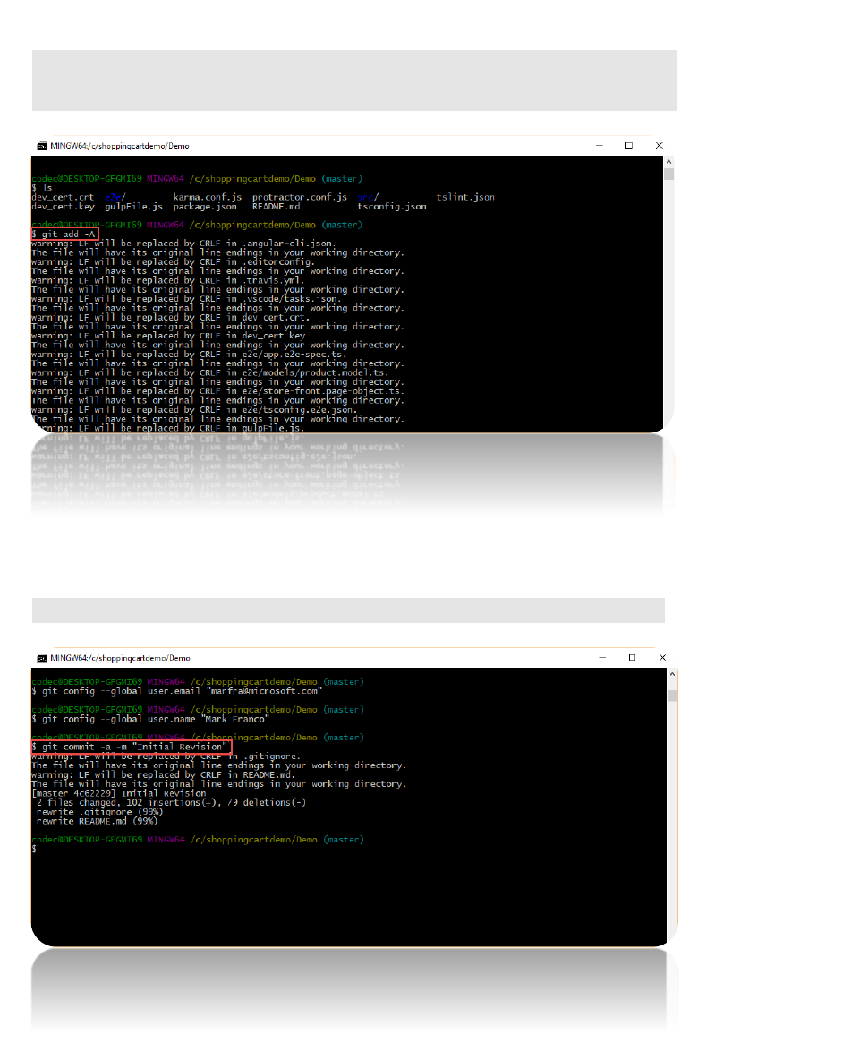 repository, but before we can do that we have to tell Git who we are by issuing the two