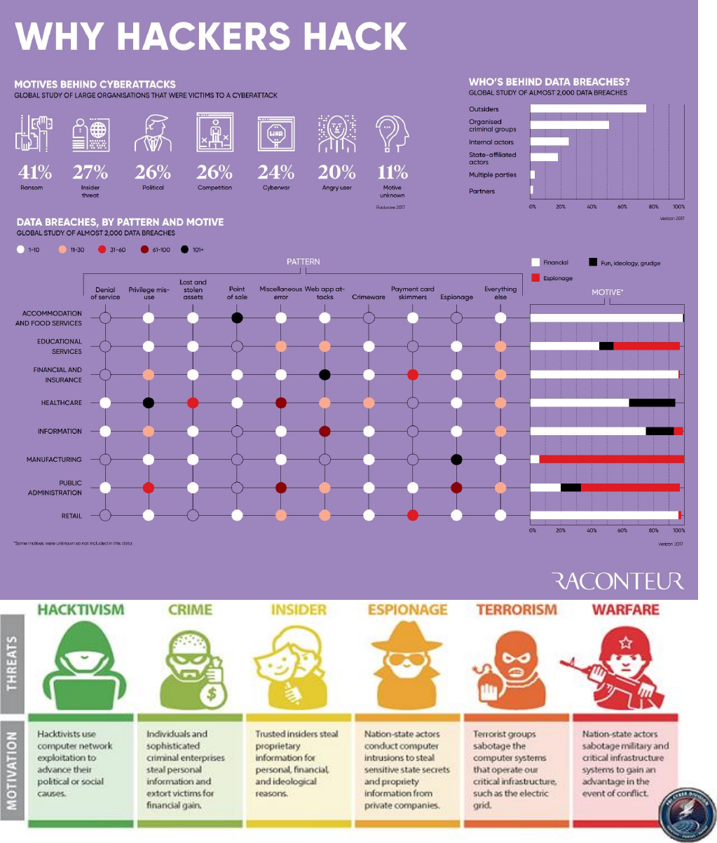 ● Script kiddie - not technologically sophisticated; uses existing scripts; ego driven; usually