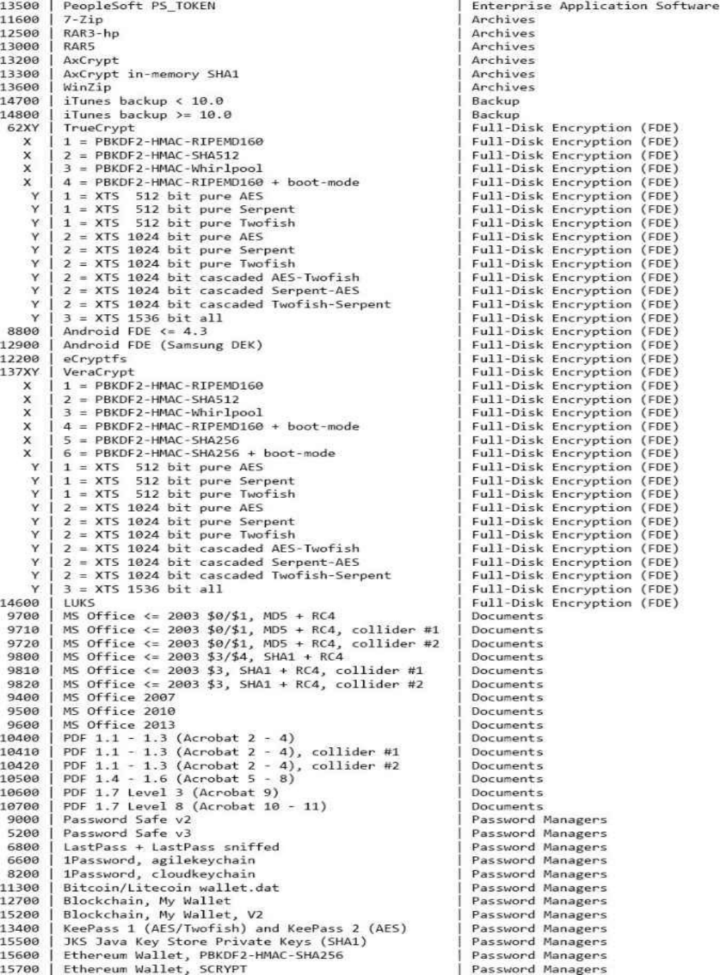 - -Hash Cracking Benchmarks