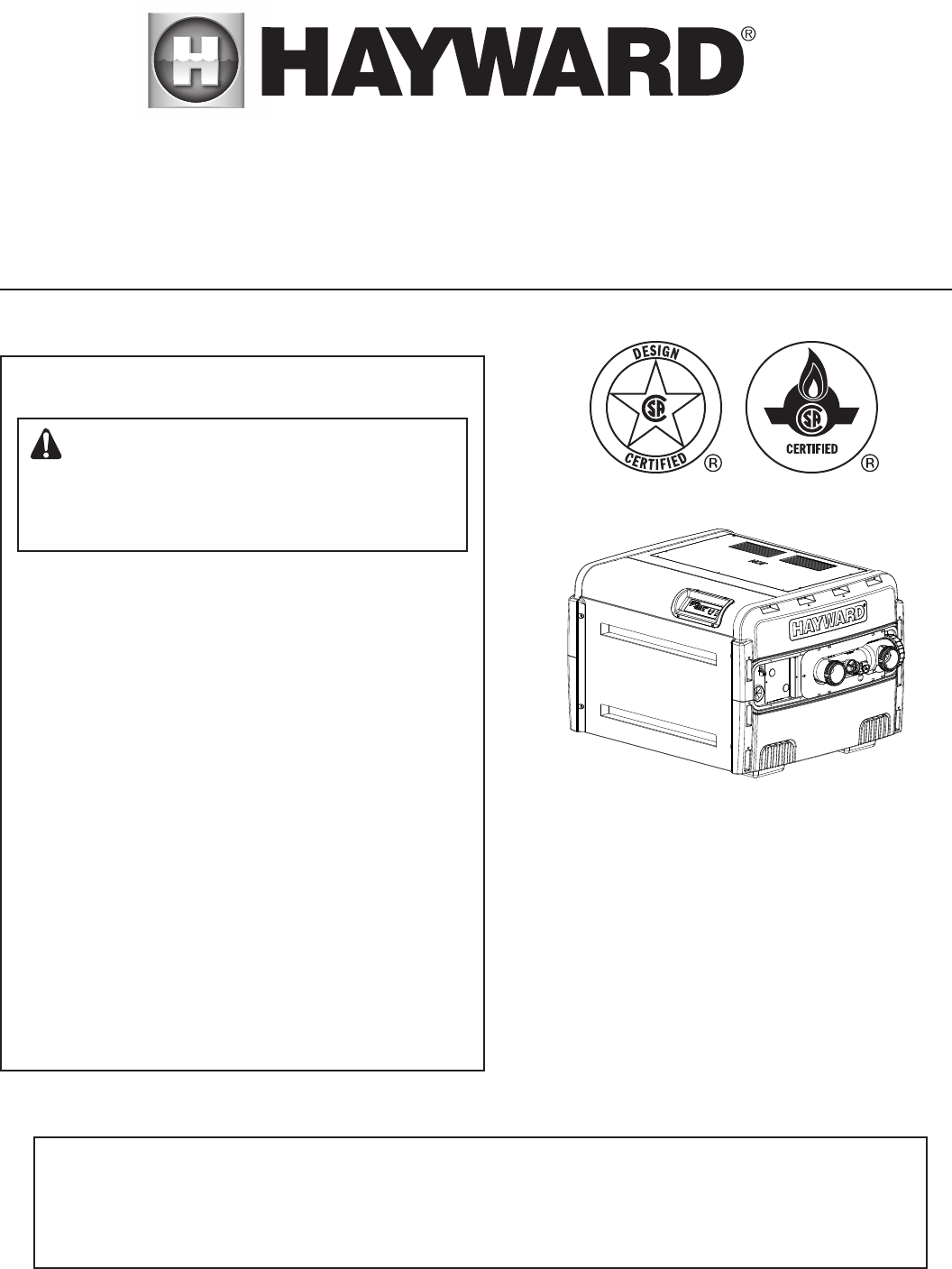 USE ONLY HAYWARD GENUINE REPLACEMENT PARTS
