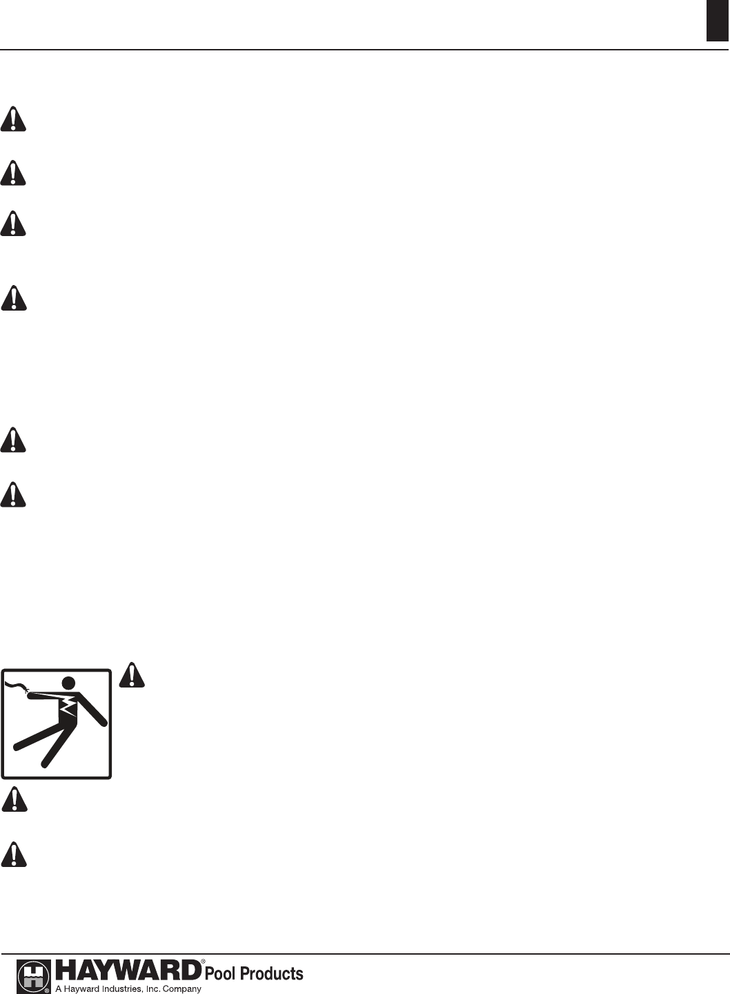 This product must be installed and serviced by authorized personnel, qualied in pool/