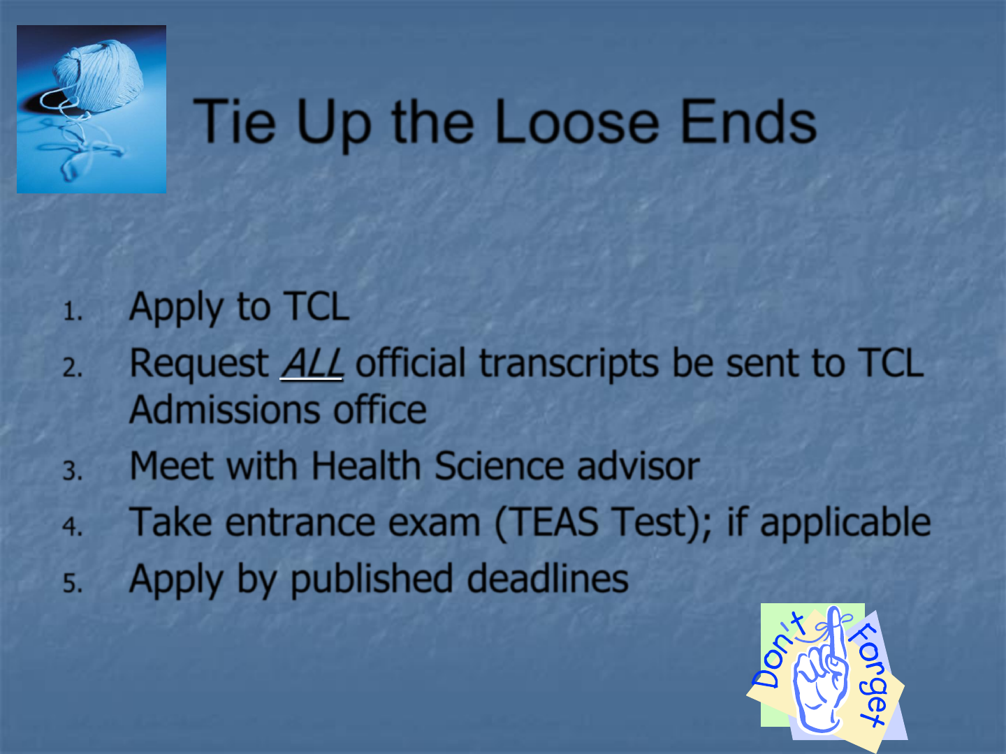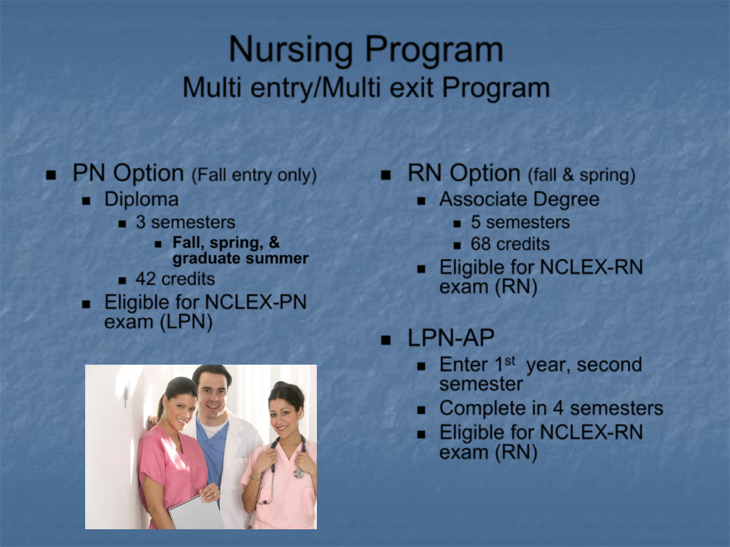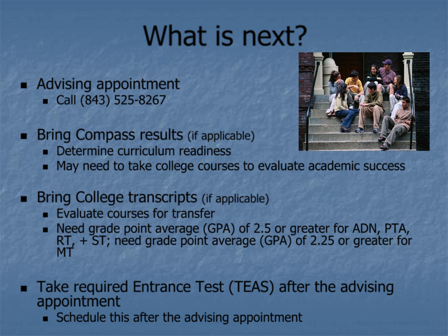 Need grade point average (GPA) of 2.5 or greater for ADN, PTA,