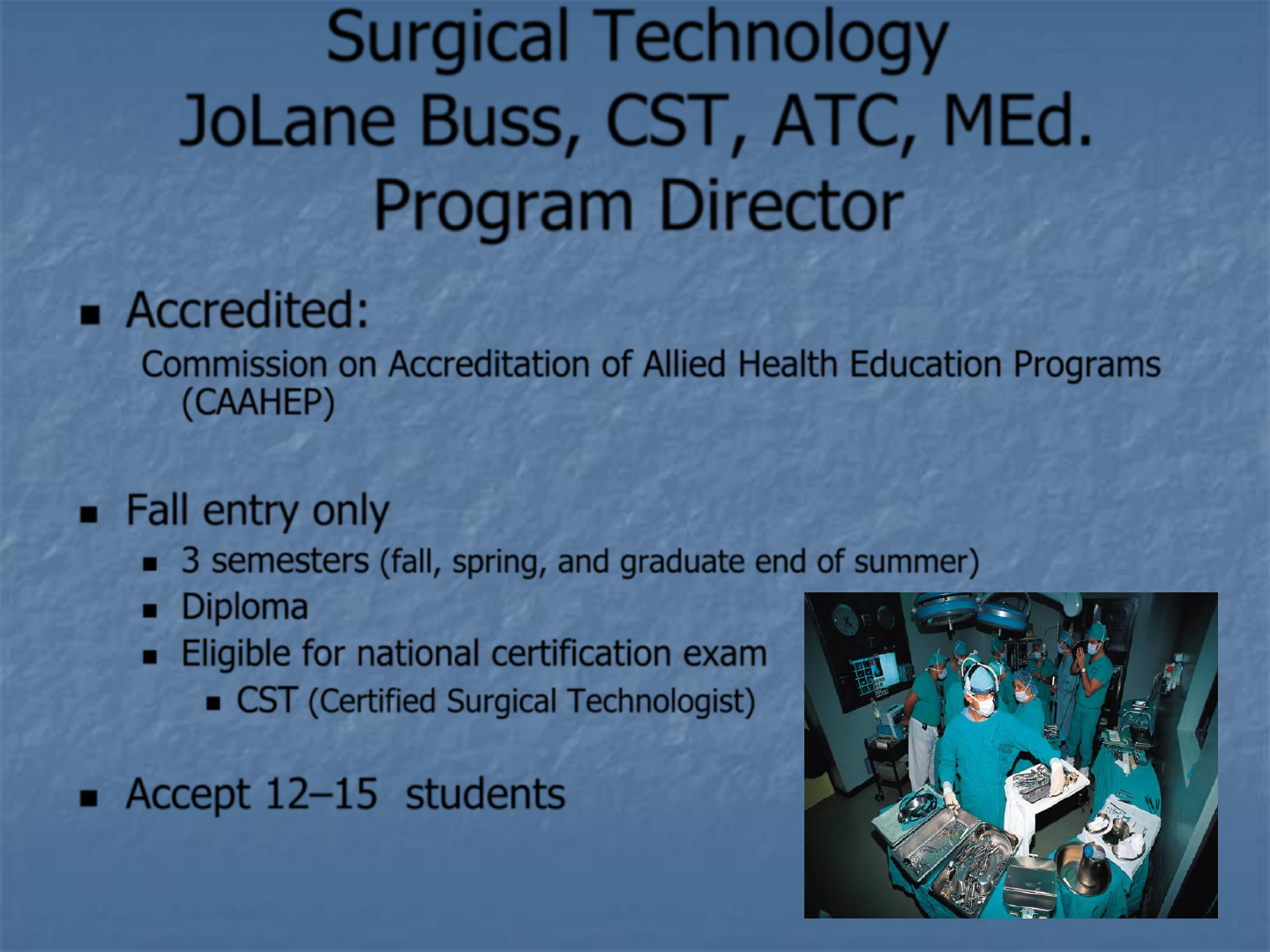 RT, + ST; need grade point average (GPA) of 2.25 or greater for