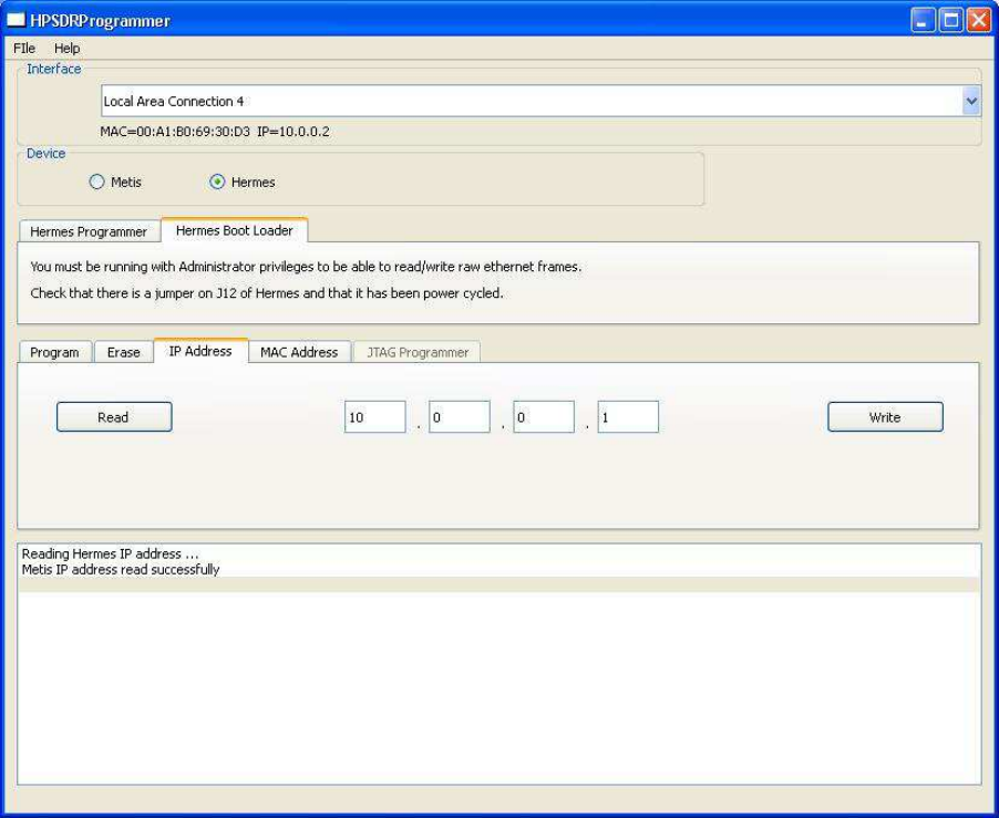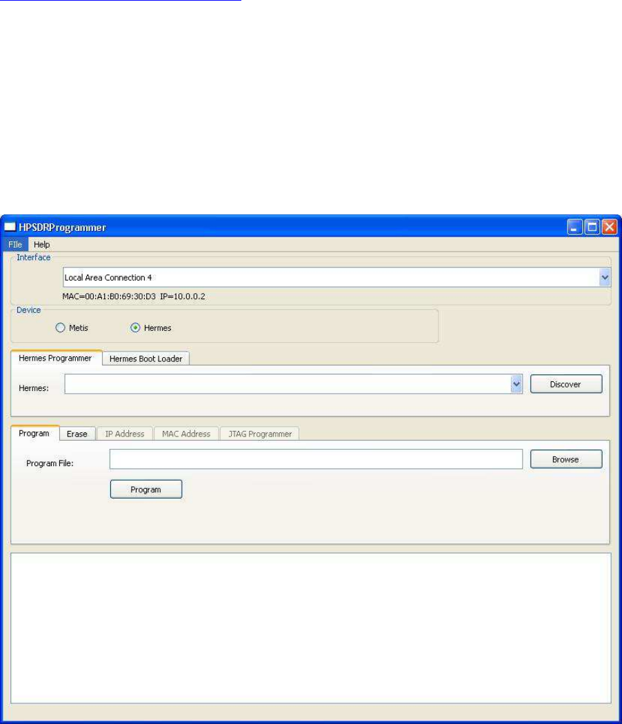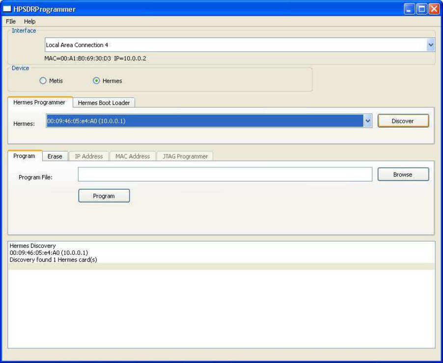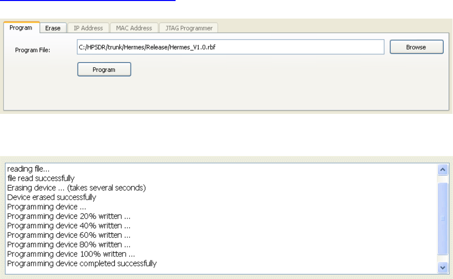 Hermes_Vx.x.rbf file that you wish to load into the EEPROM. Click ‘Program’ and the