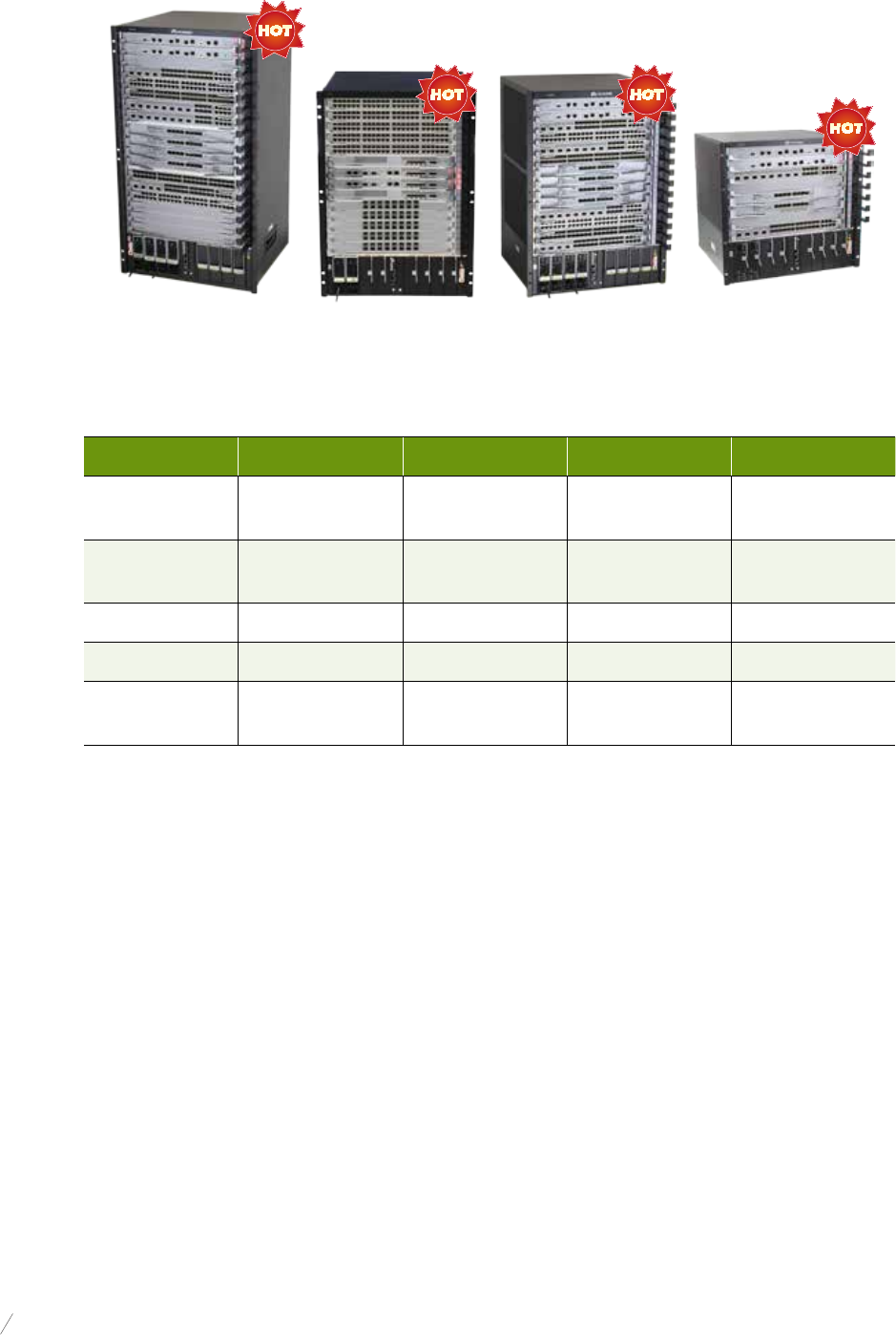 switches, with as much as 178 Tbit/s per chassis switching capacity and up to 576*100GE, 576*40GE,