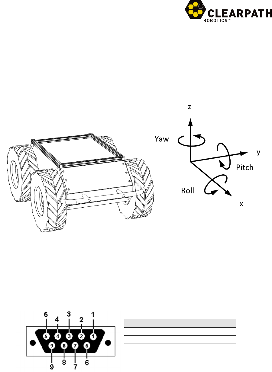 wheels travel in the positive x-direction. The direction of the axes differs from those used for roll, pitch, and