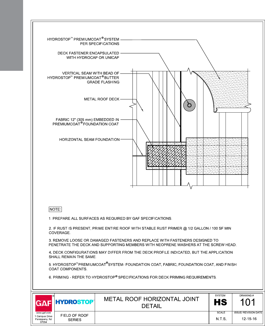 HS-101 Typical Metal Roof Joint Detail 50