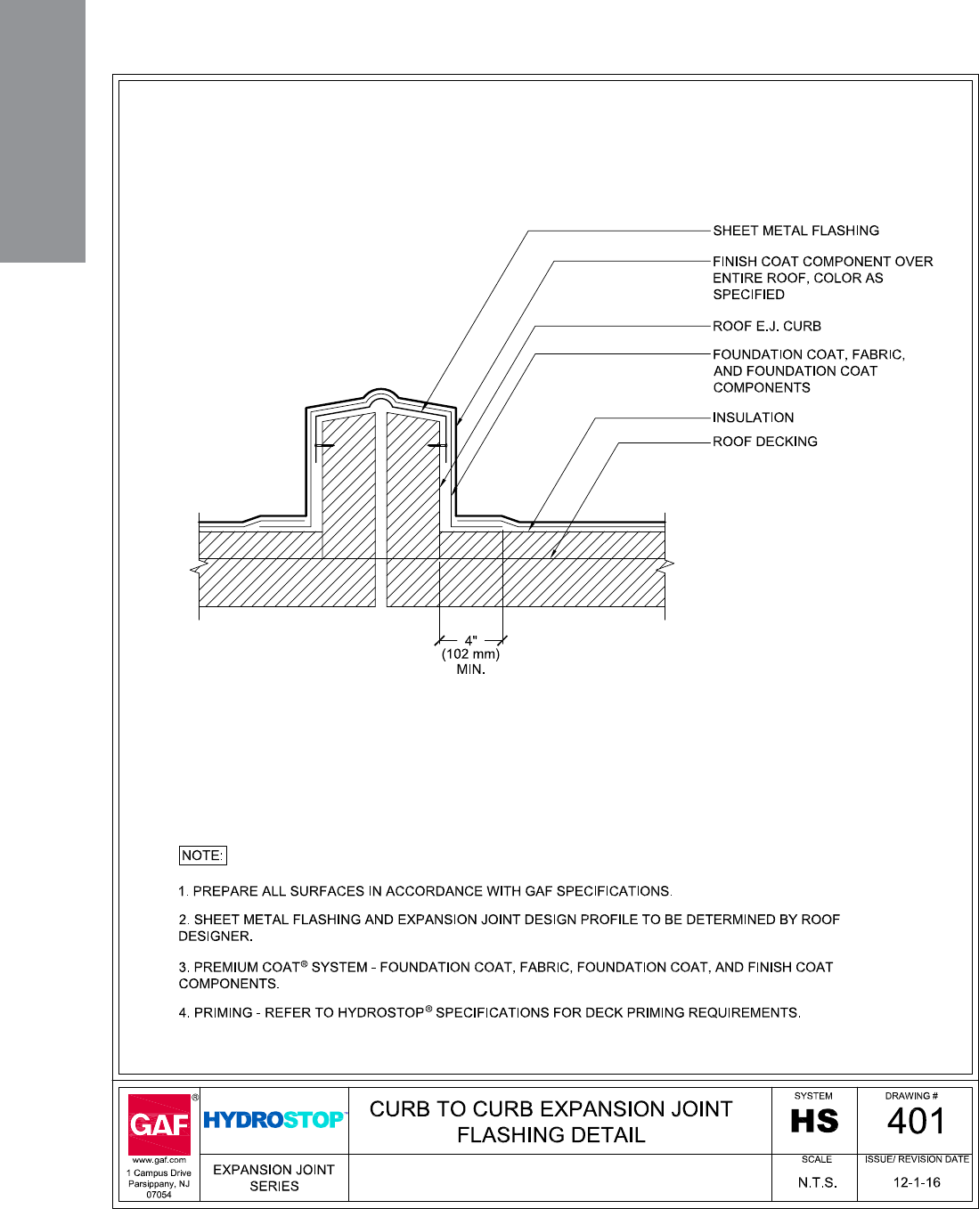 HS-401 Curb to Curb Expansion Joint Flashing Detail 62