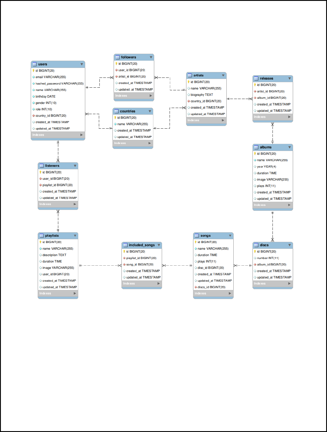 The following image shows our database relational model: