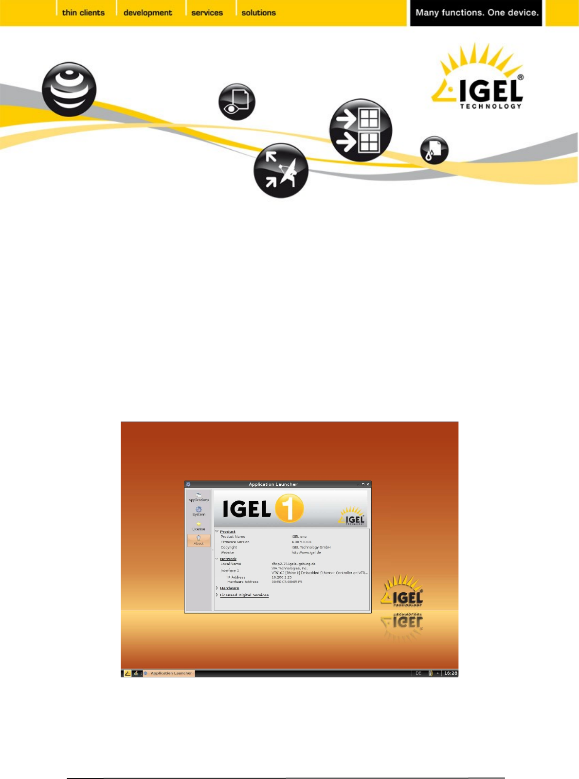 your IGEL product such as hardware and firmware information and allows to update, shutdown or