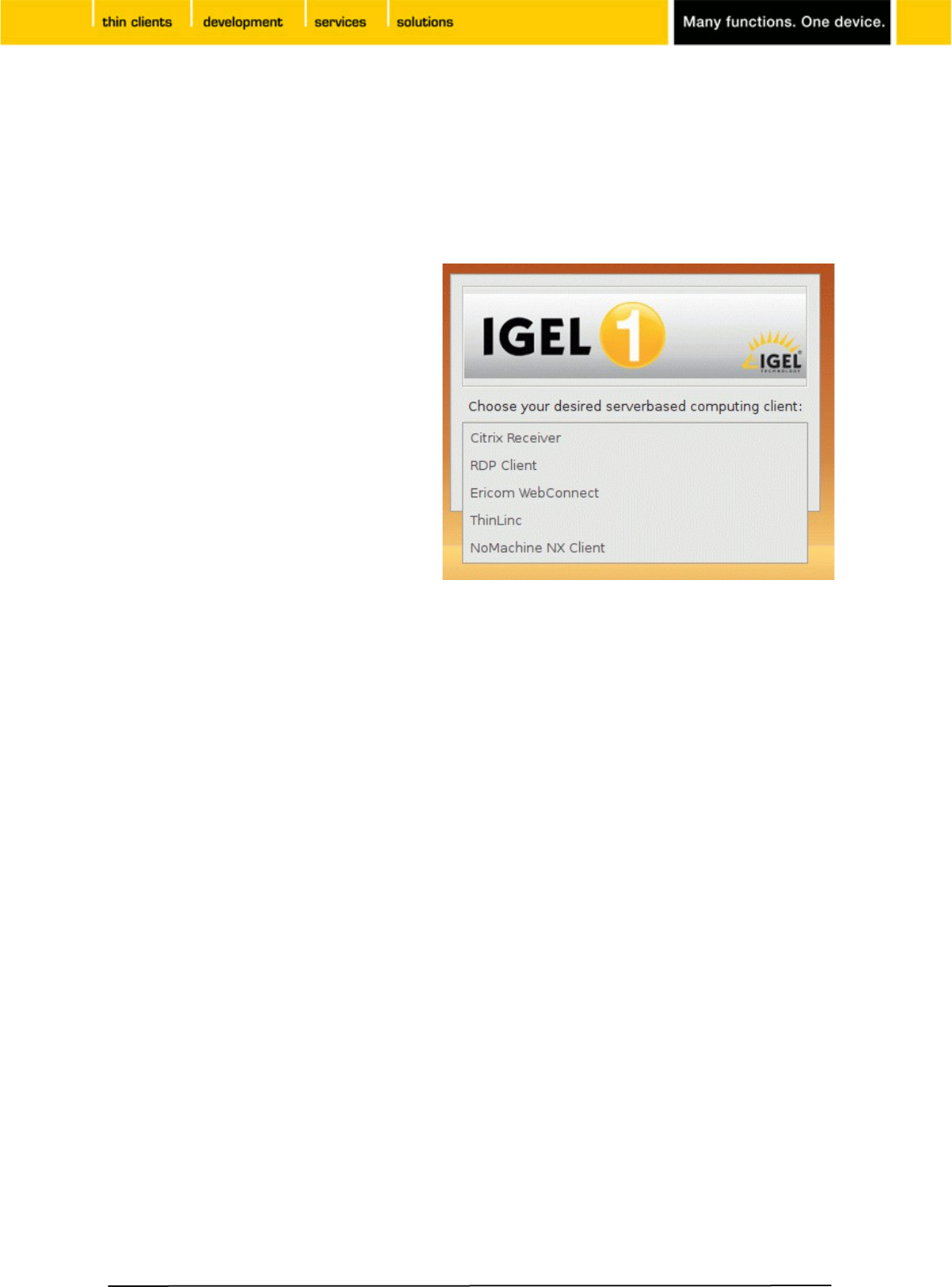is chosen during the initial boot. Thus makes the IGEL one the perfect end device for server-based