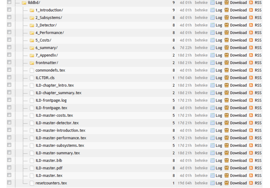 All files for the DBD are collected into one svn repository. This repository is hosted at DESY. Access to it is