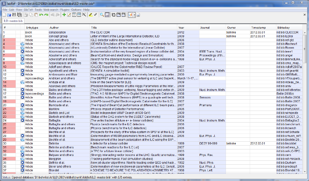 All references for the DBD are kept in the bibtex database. Handling and managing this can be a bit