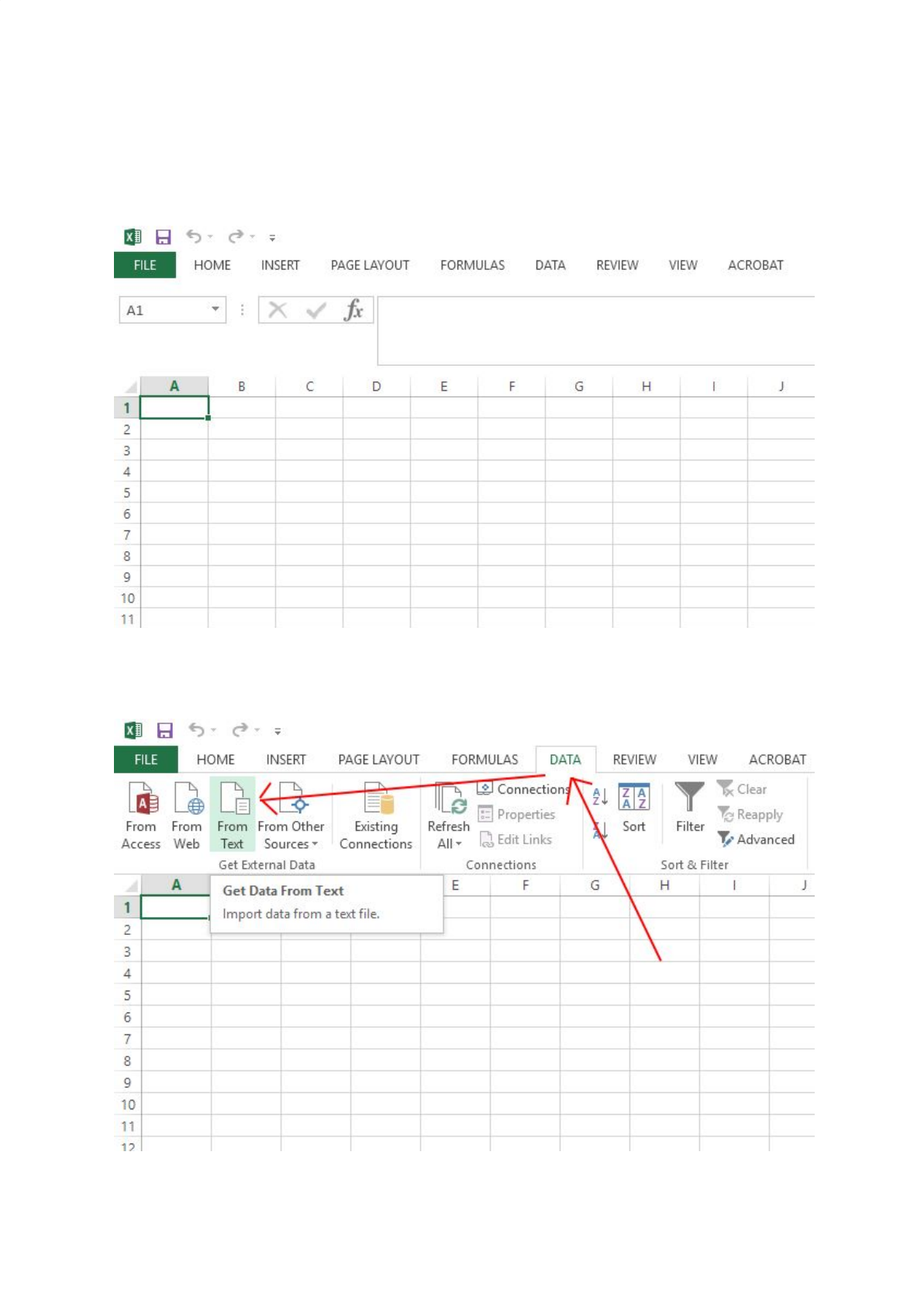 STEP 2: Click on ‘DATA’ -> ‘From text’