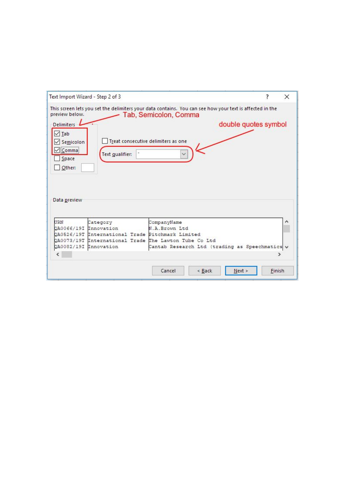 STEP 5: In ‘Text Import Wizard - Step 2’ specify: