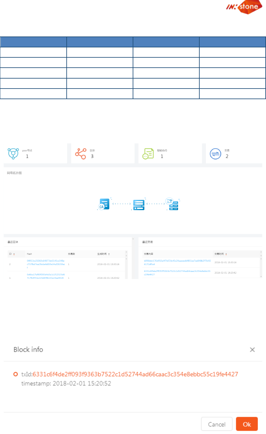 (3)账本内容可视化呈现:区块链网络拓扑、区块信息、交易信息以及智能合