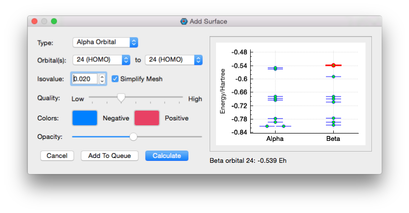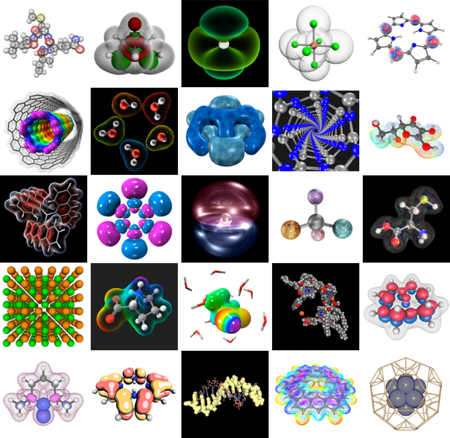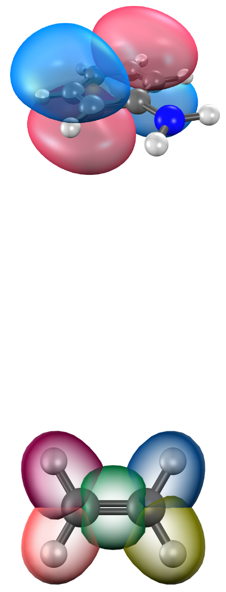 molecular orbitals, (spin) densities and van der Waals surfaces. These surfaces can be col-