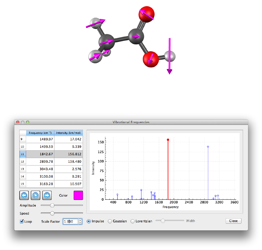 will also highlight the corresponding atoms in the viewer for easy identification. If impulses