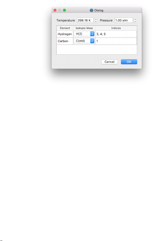 Figure 4.13: Isotope substitution dialog allowing non-default masses to be specified for