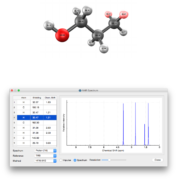 the given level of theory, chemical shifts can also be displayed. Selecting rows in the table